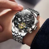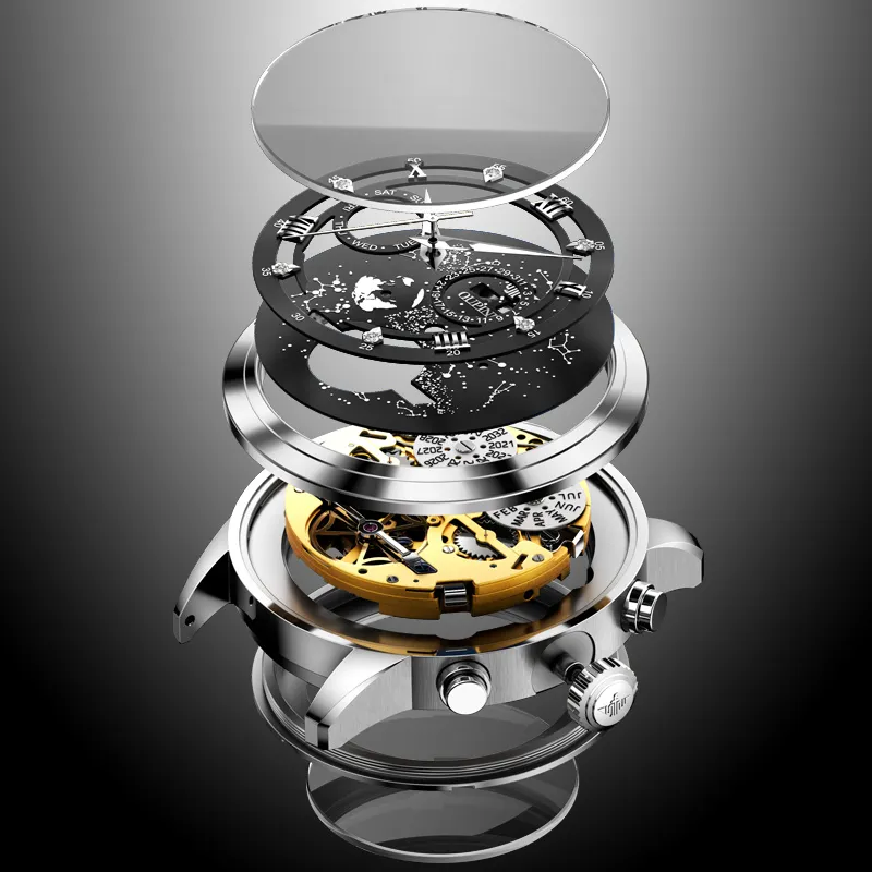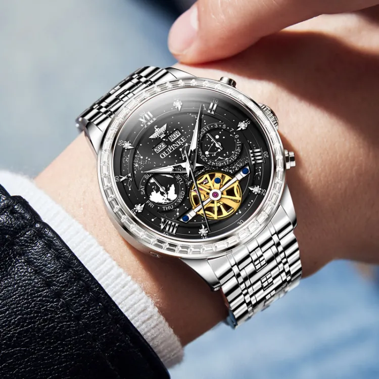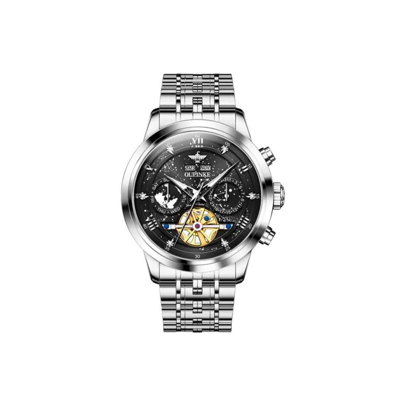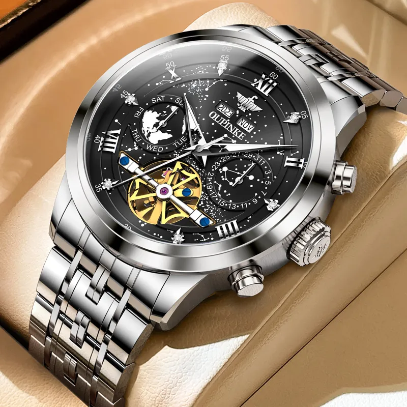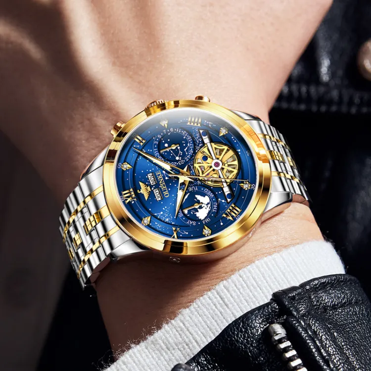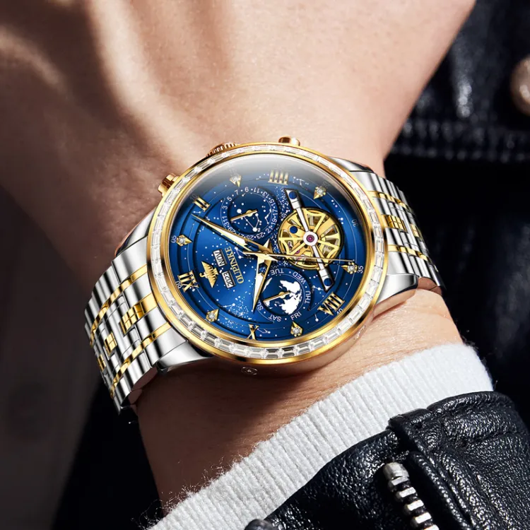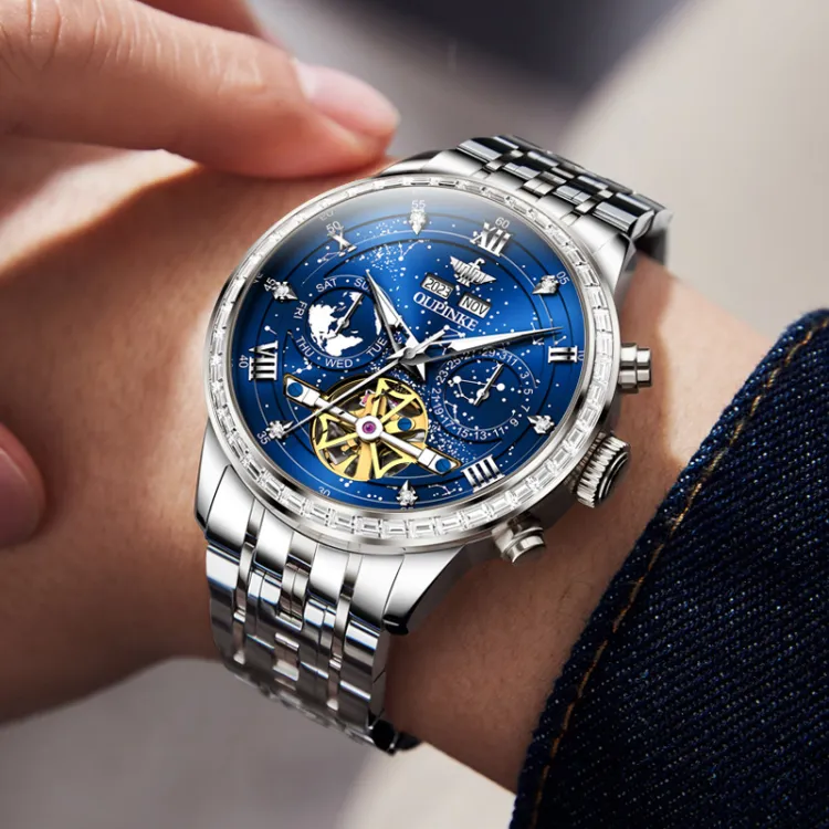 Oupinke Автоматический Механический Механизм Нержавеющая Сталь Ремешок Часы Мужские Часы Синий Циферблат