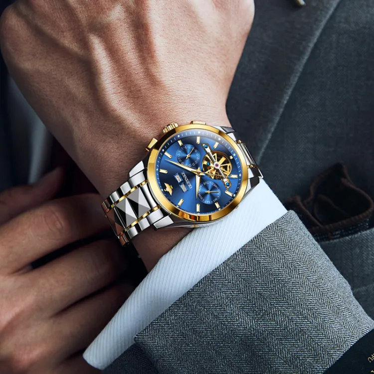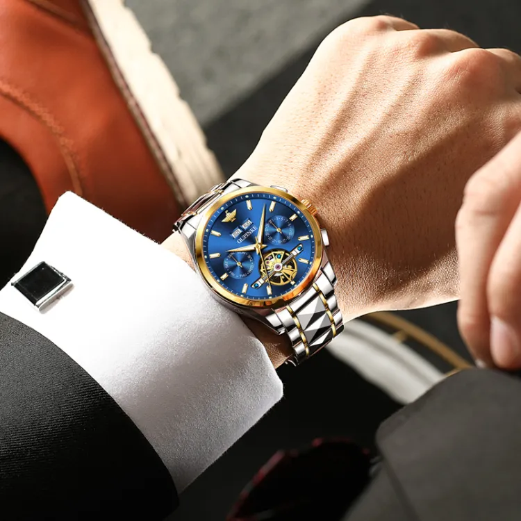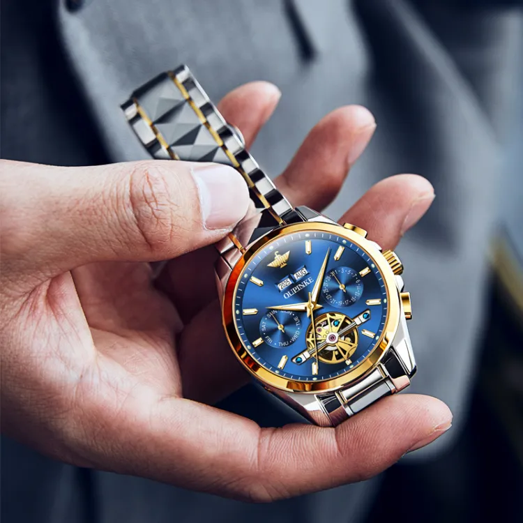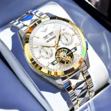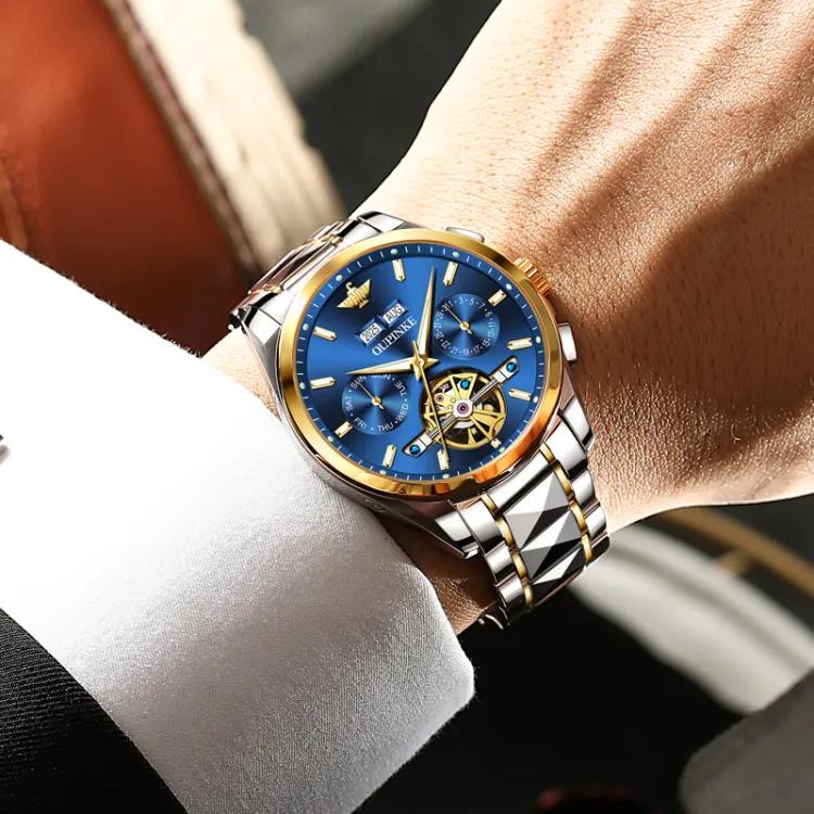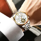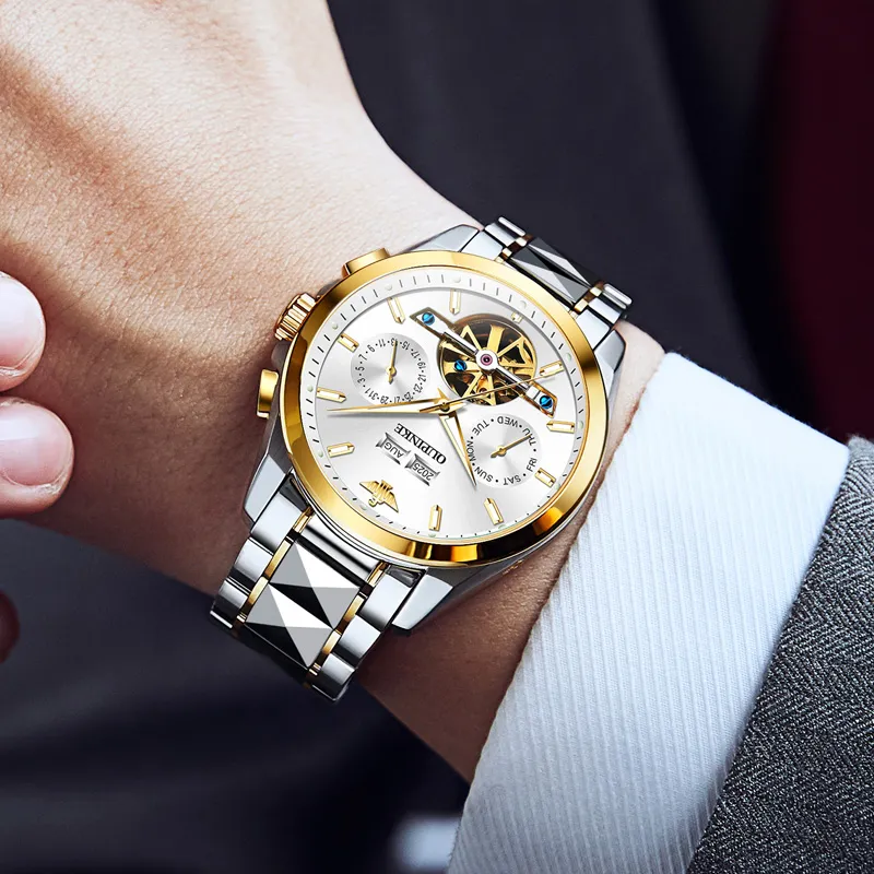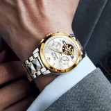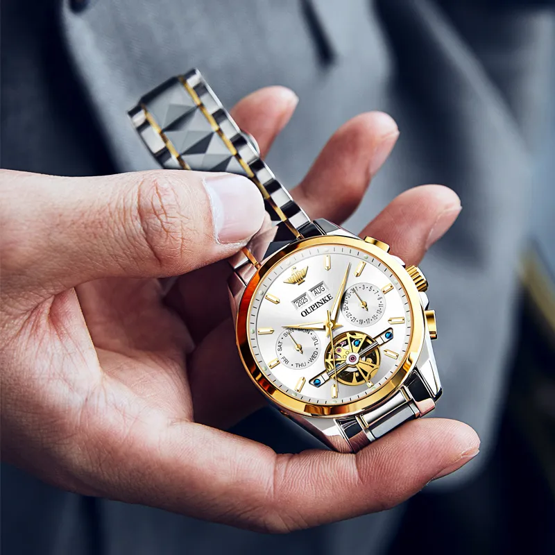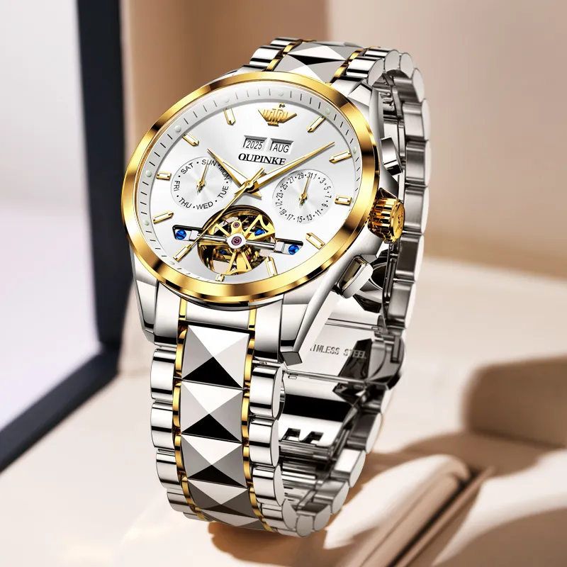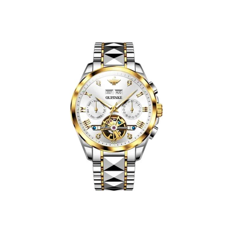 Oupinke Механический механизм ремешок из нержавеющей стали мужские часы белый циферблат