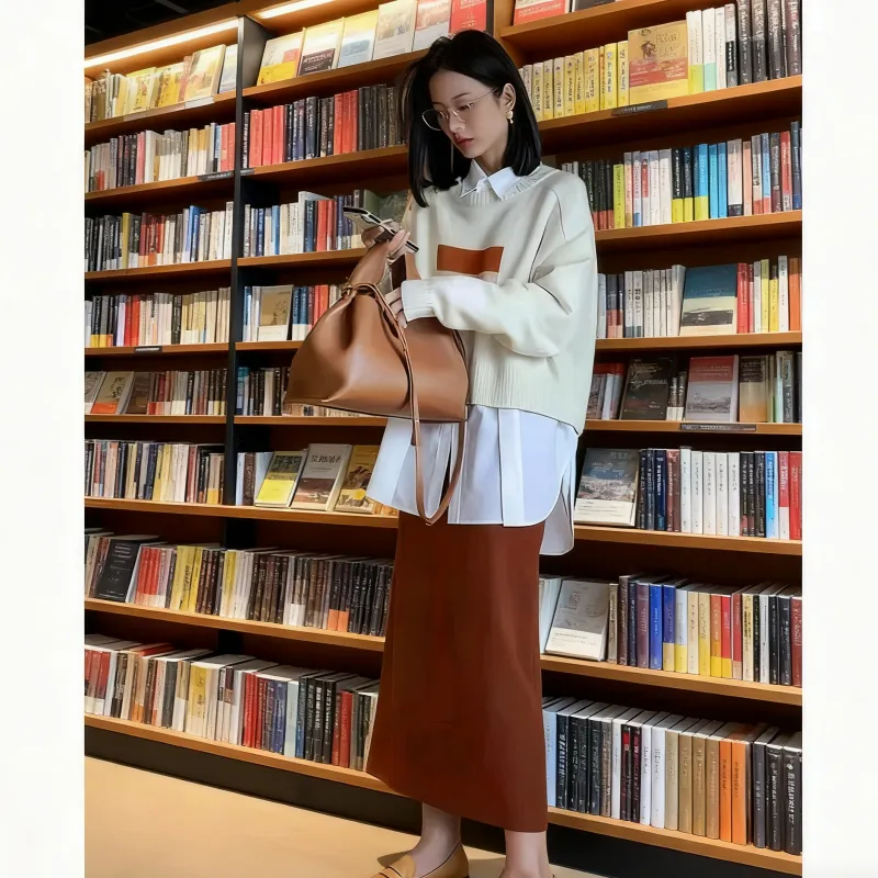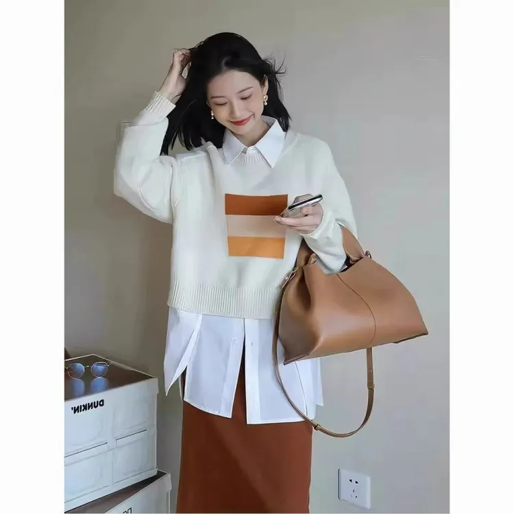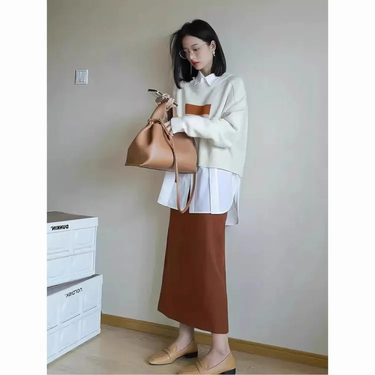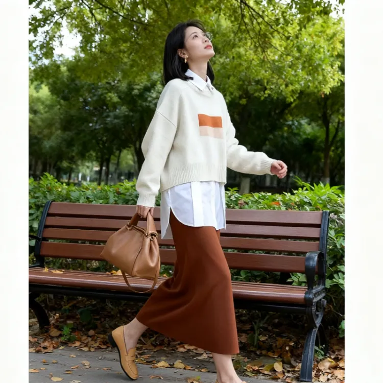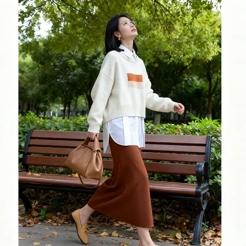 Абрикосовый свитер + оранжевая юбка