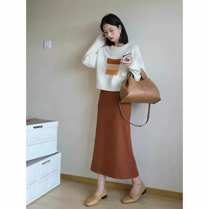 Комплект:Абрикосовый свитер + оранжевая юбка