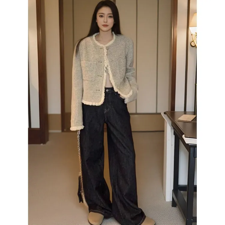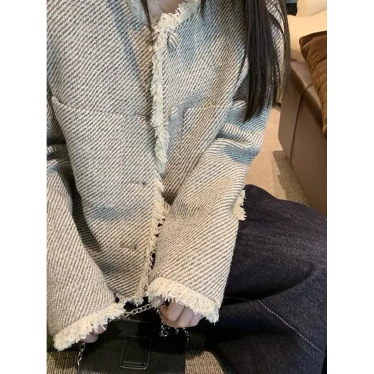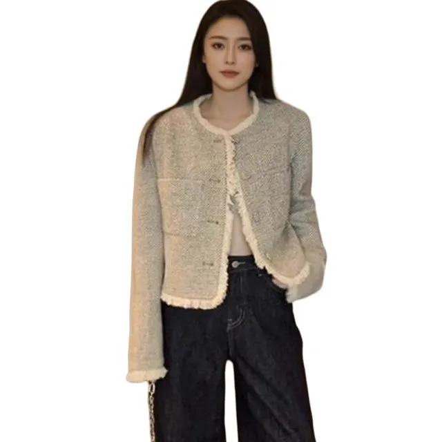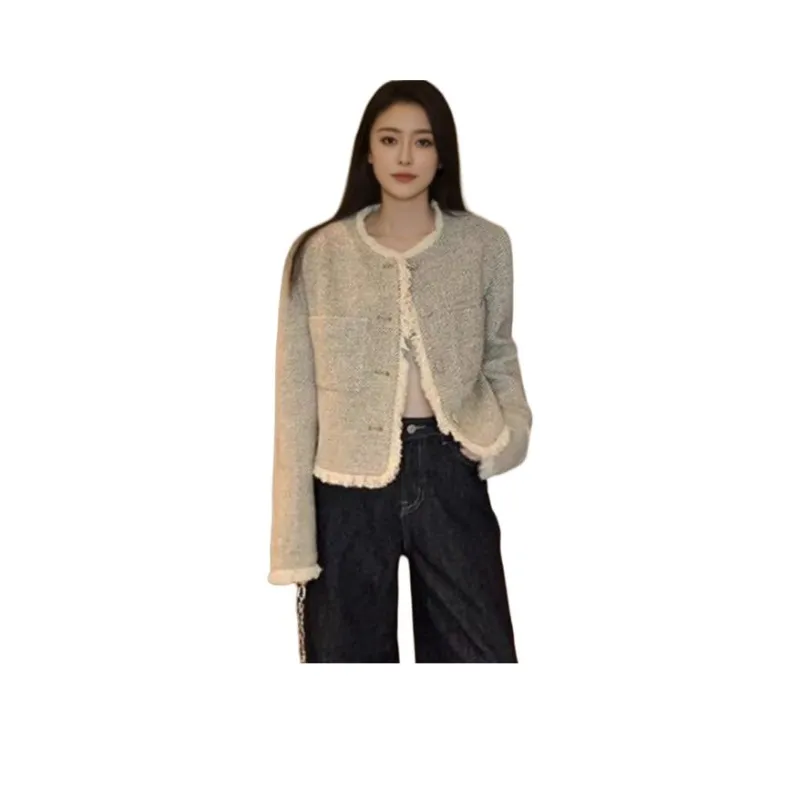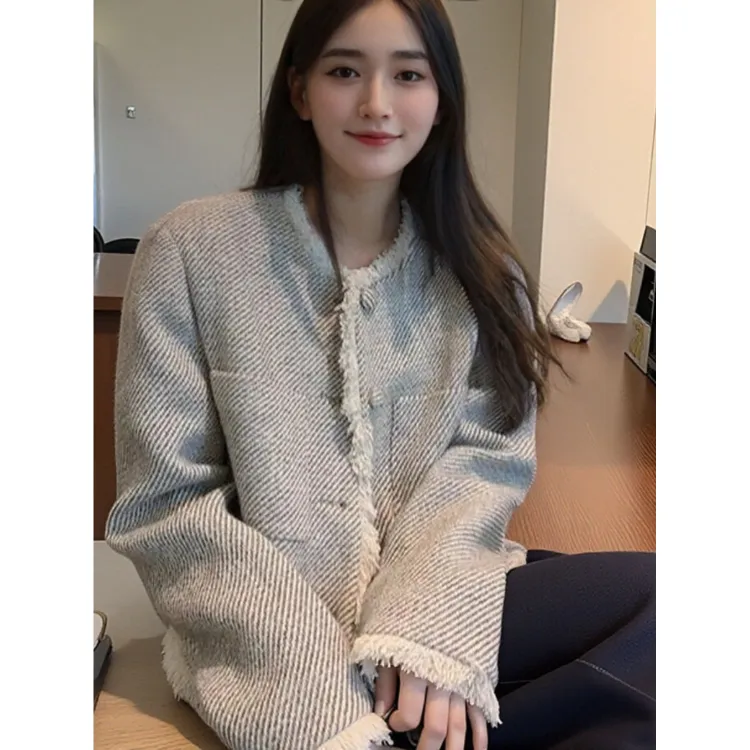 OURUOKE Светло-серый Женский Короткий Пальто