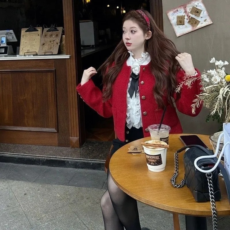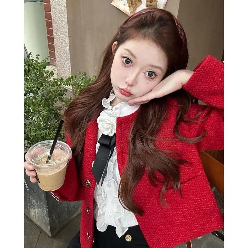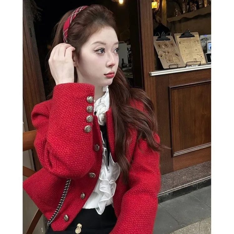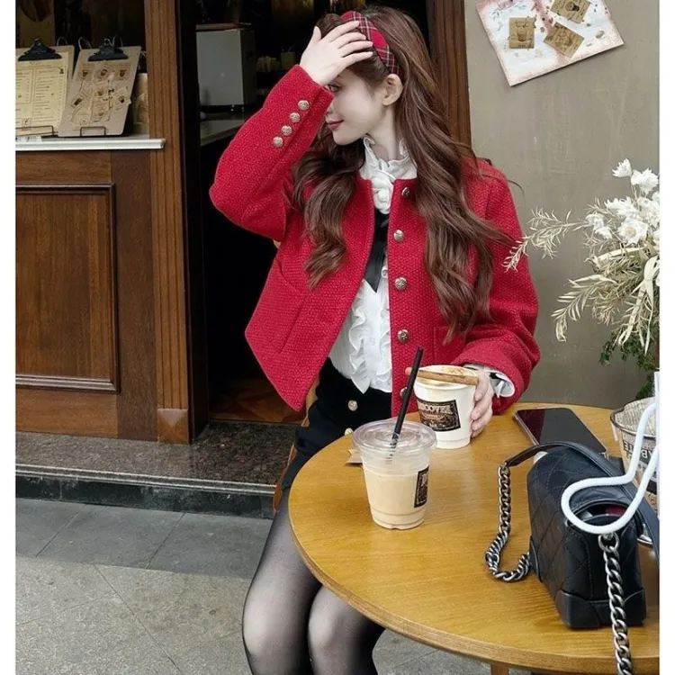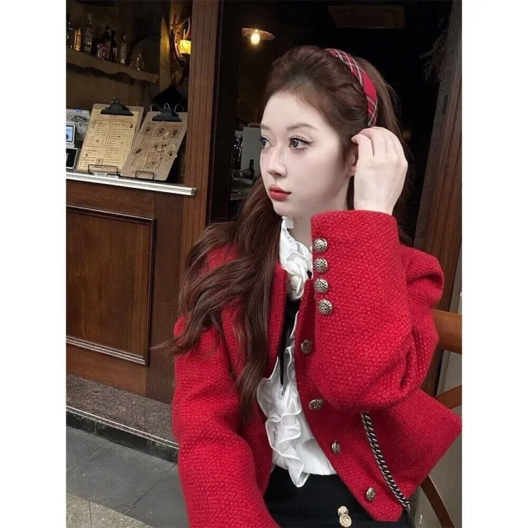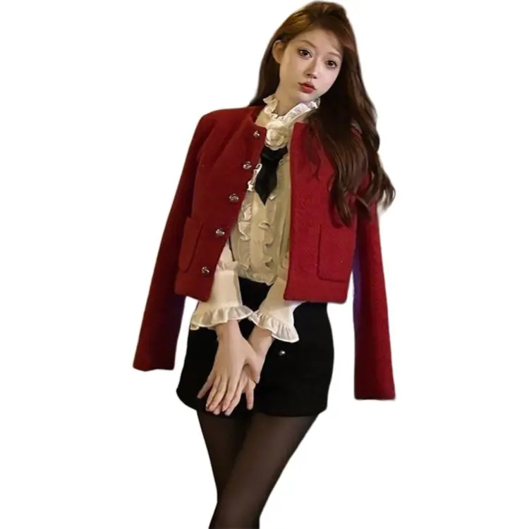 OURUOKE Red Women's Short Coat OURUOKE Красный Женское Короткое Пальто