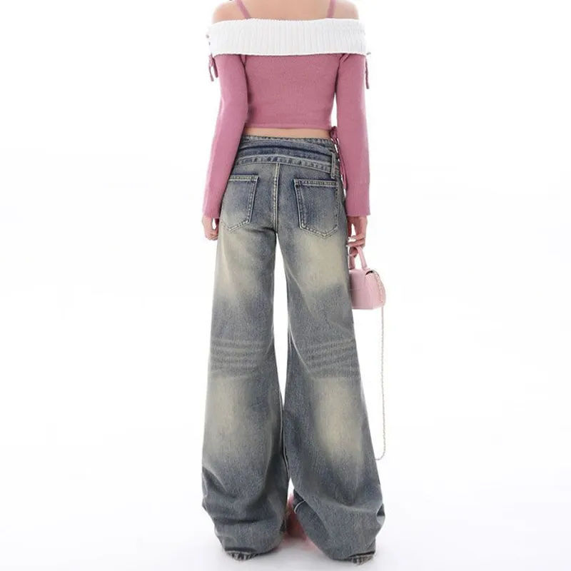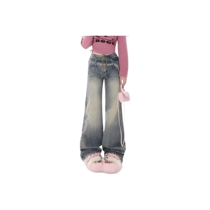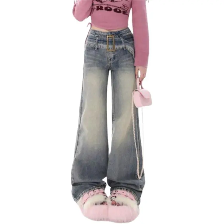 OURUOKE Ностальгический синий включает ремень женские джинсы