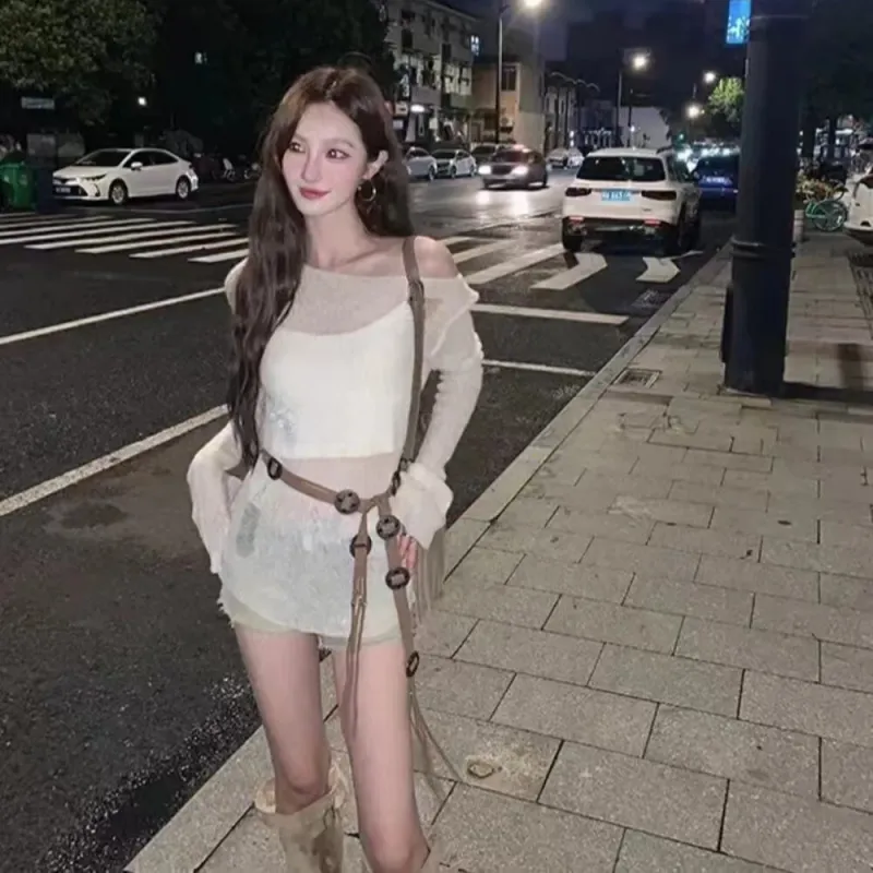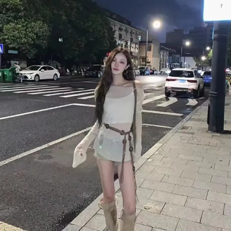 OURUOKE Ecru с ремнем женский трикотаж