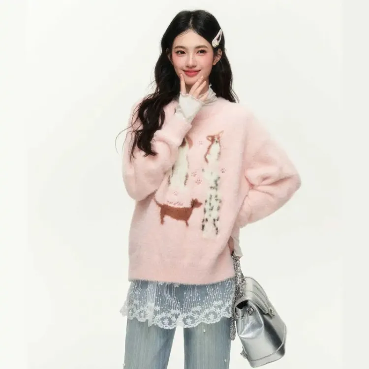 OURUOKE Розовый Женский Трикотаж