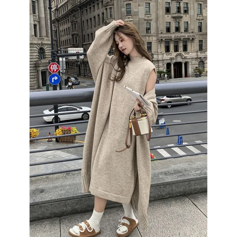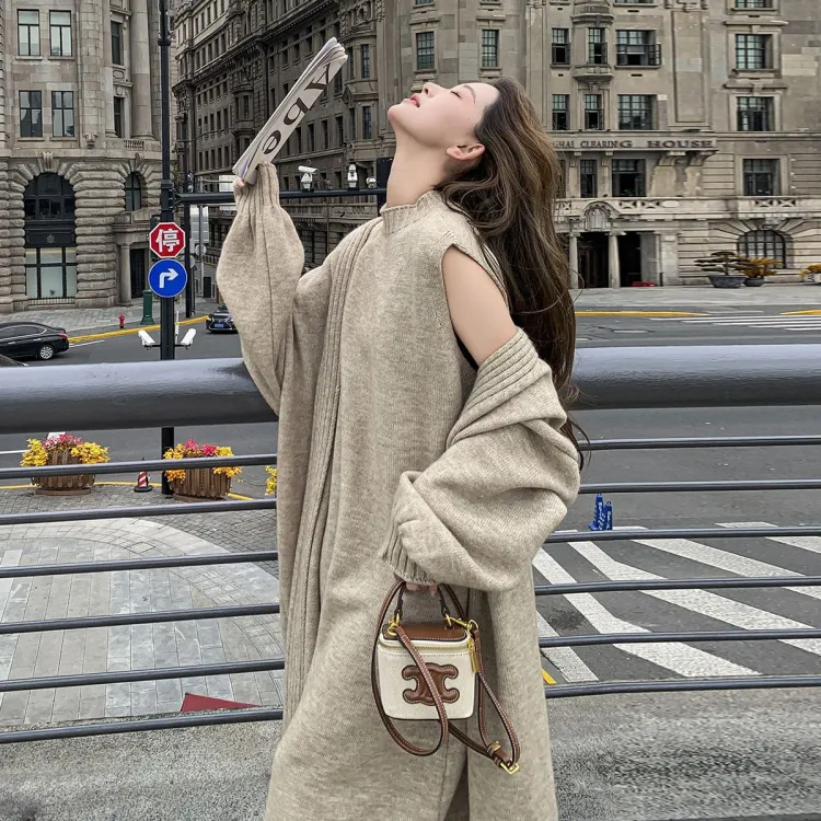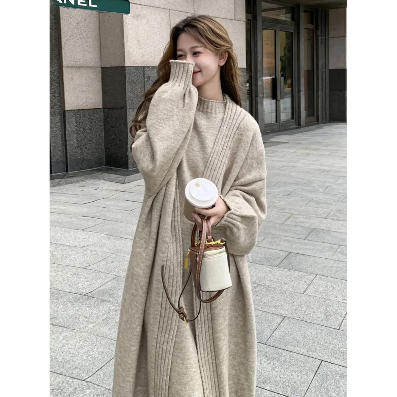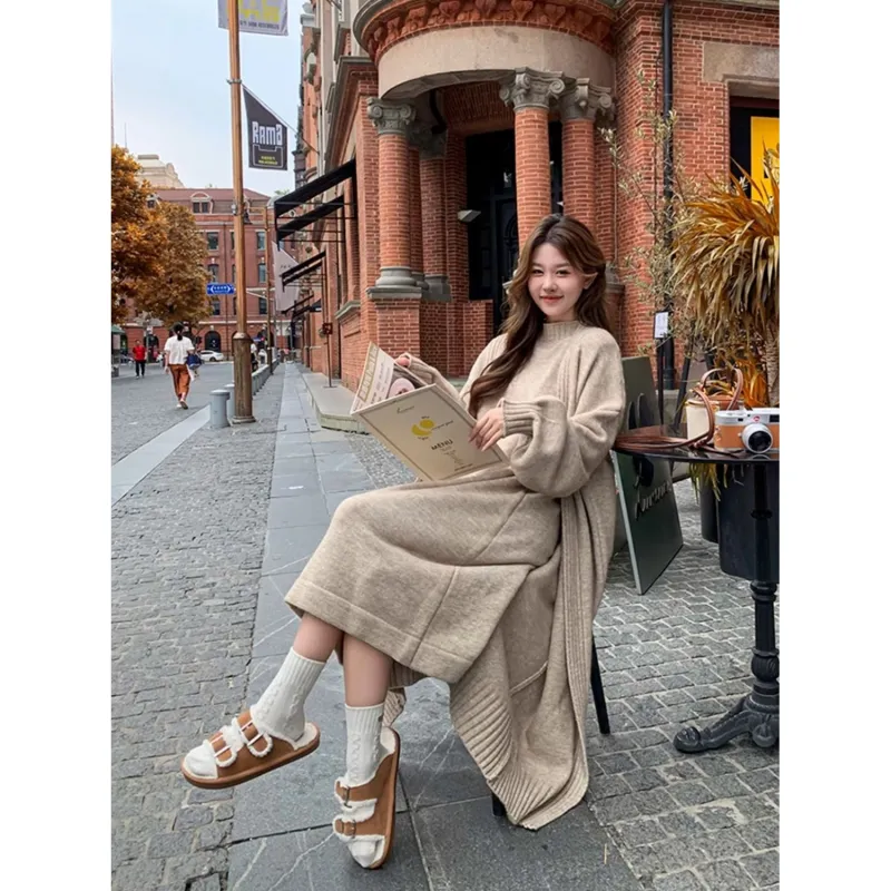 OURUOKE Длинное платье с длинными рукавами женское