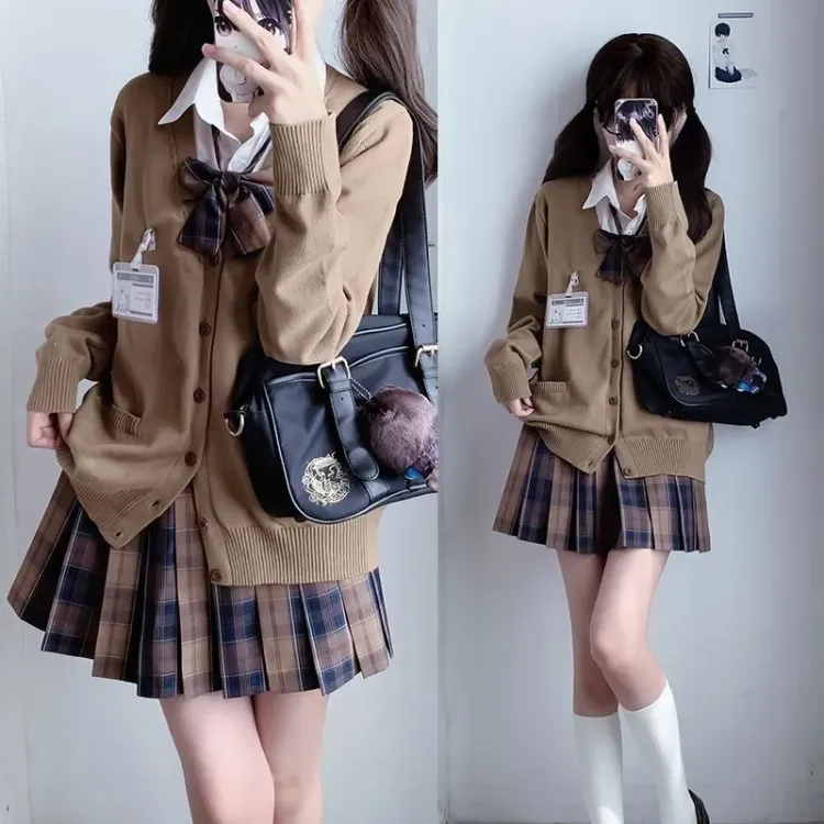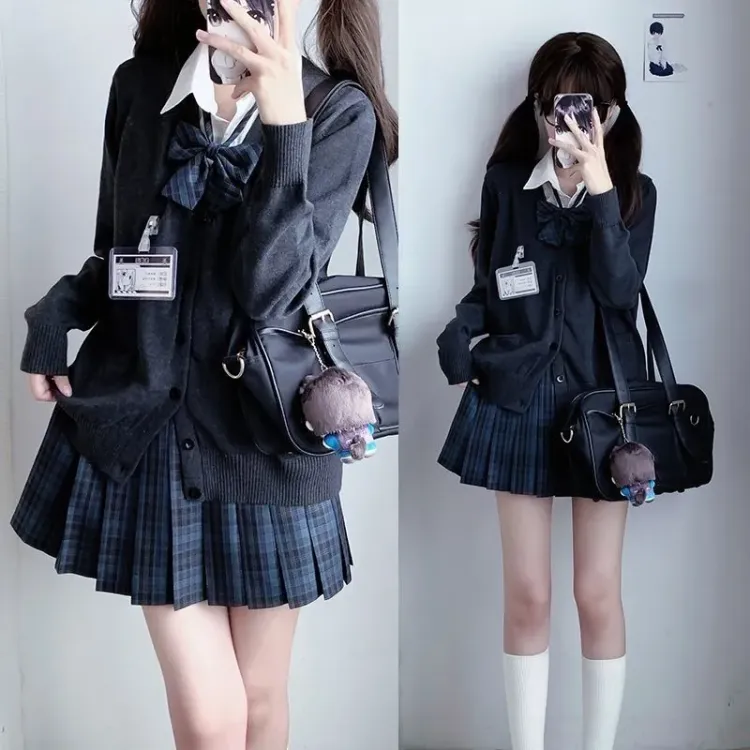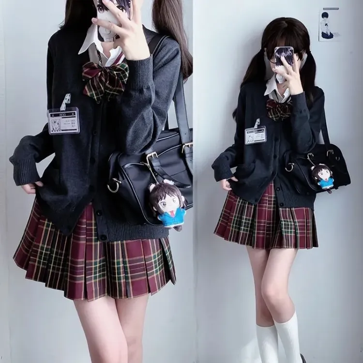 Боярышник Дерево Юбка+Темно-серый Кардиган+Галстук-бабочка