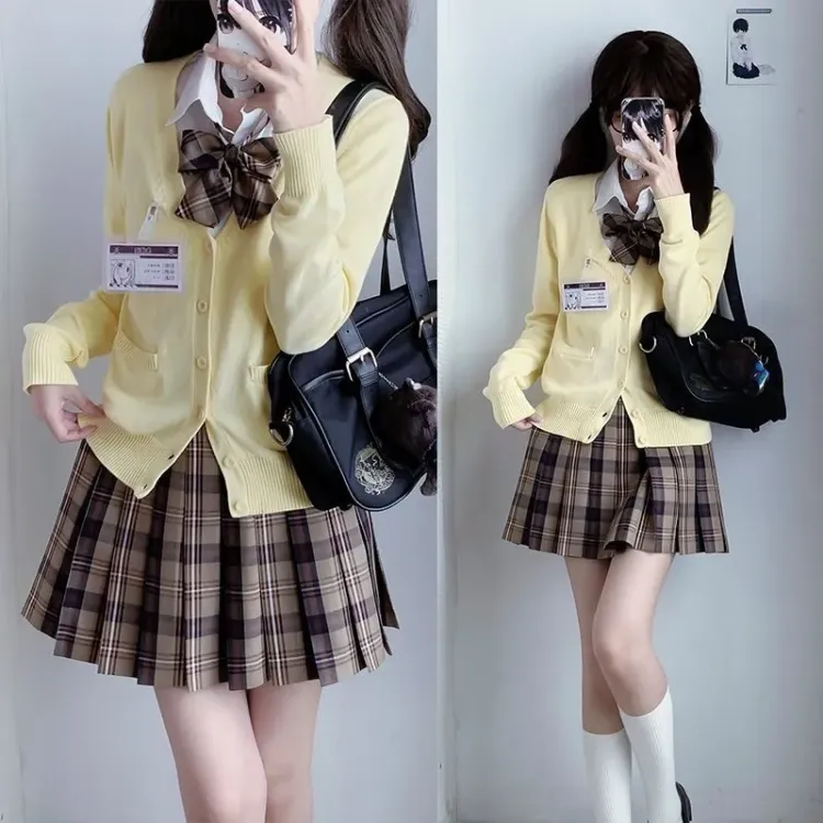 Dreamy Клетчатая Юбка + Желтый Кардиган + Bow Ties