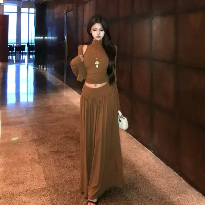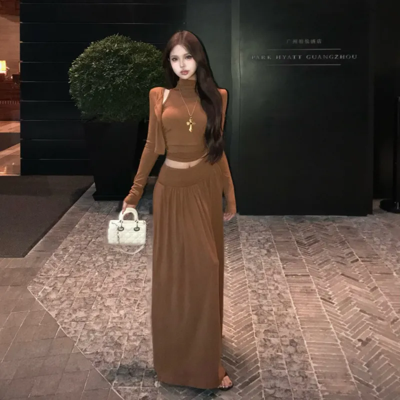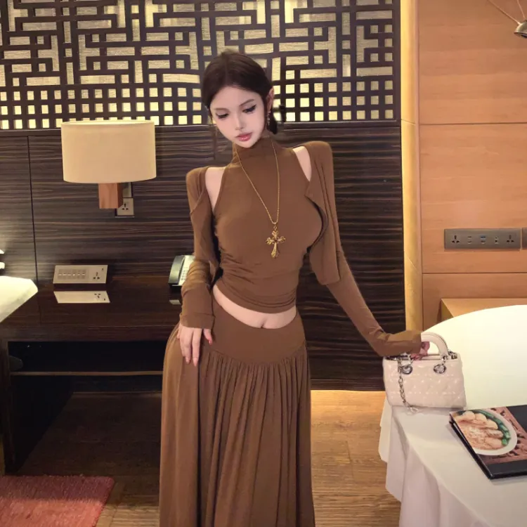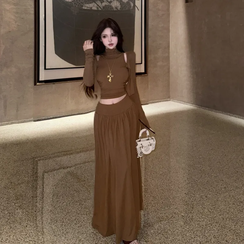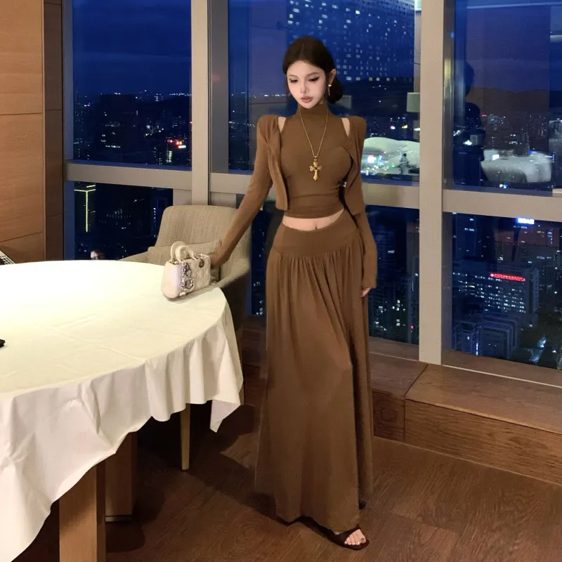 OURUOKE Кардиган+Майка+Юбка Женские Комплекты с юбкой