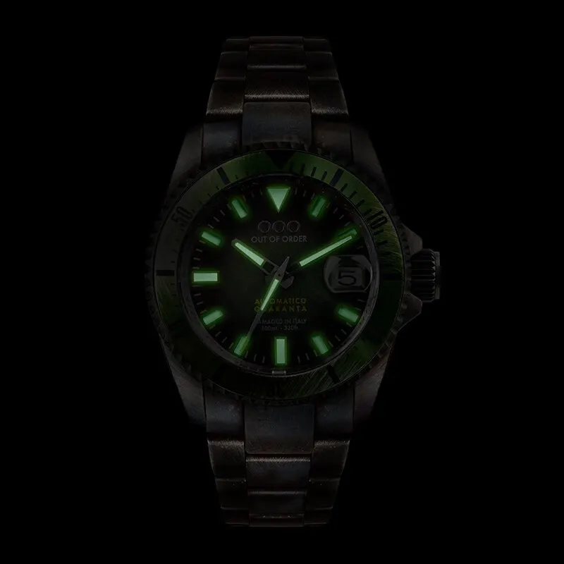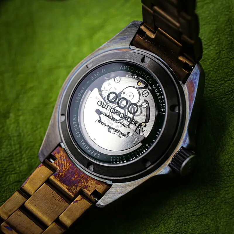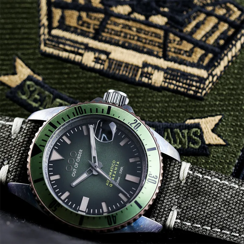 OUT OF ORDER Мужские наручные часы Автоматический механический механизм Зеленый циферблат
