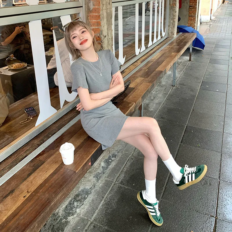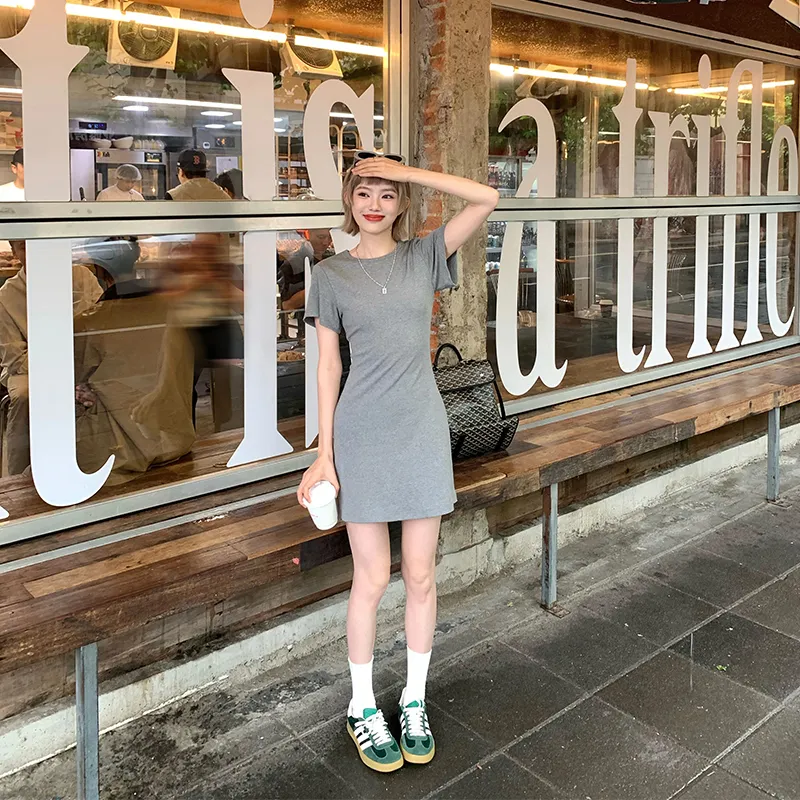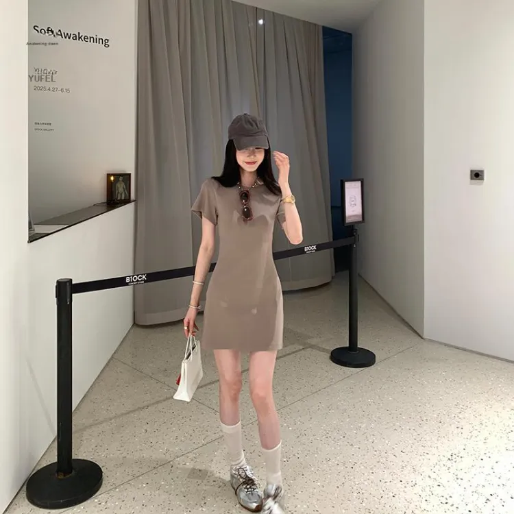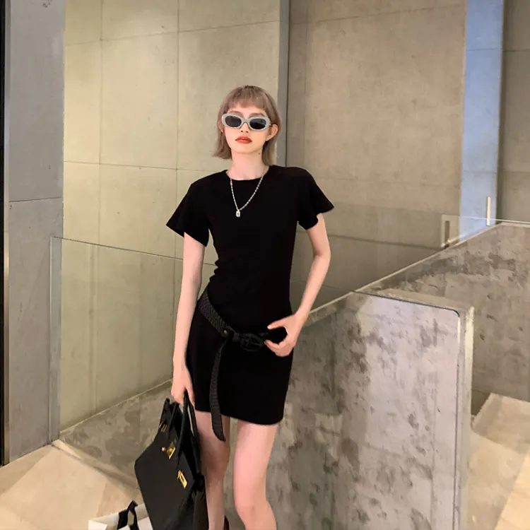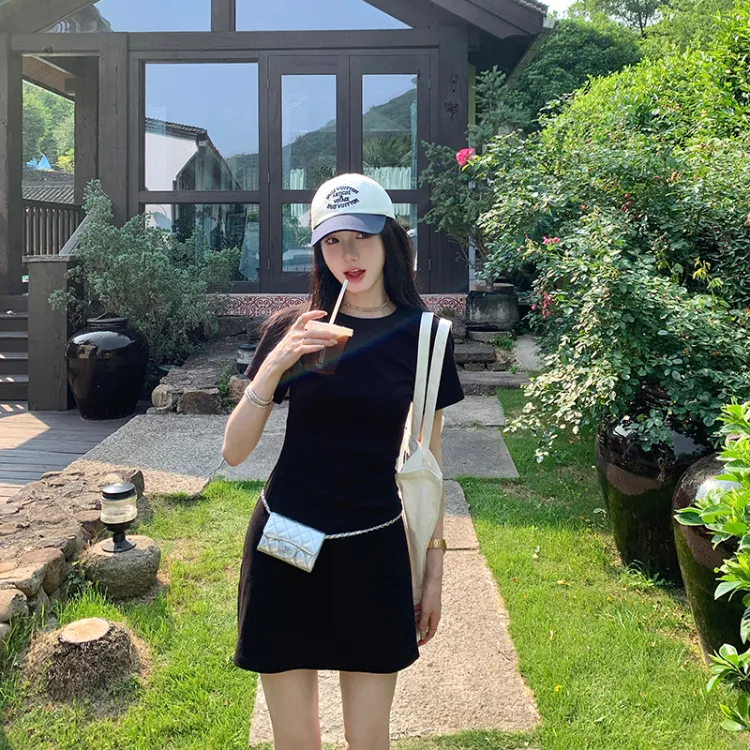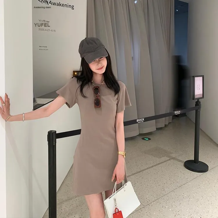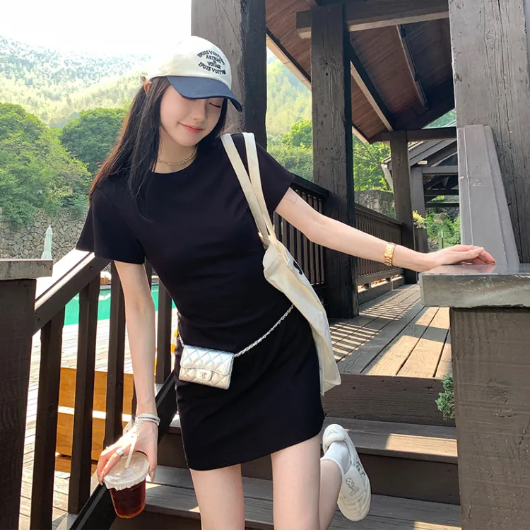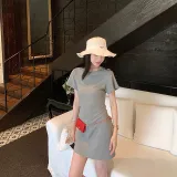 Ouyang Короткий рукав Платье Женское