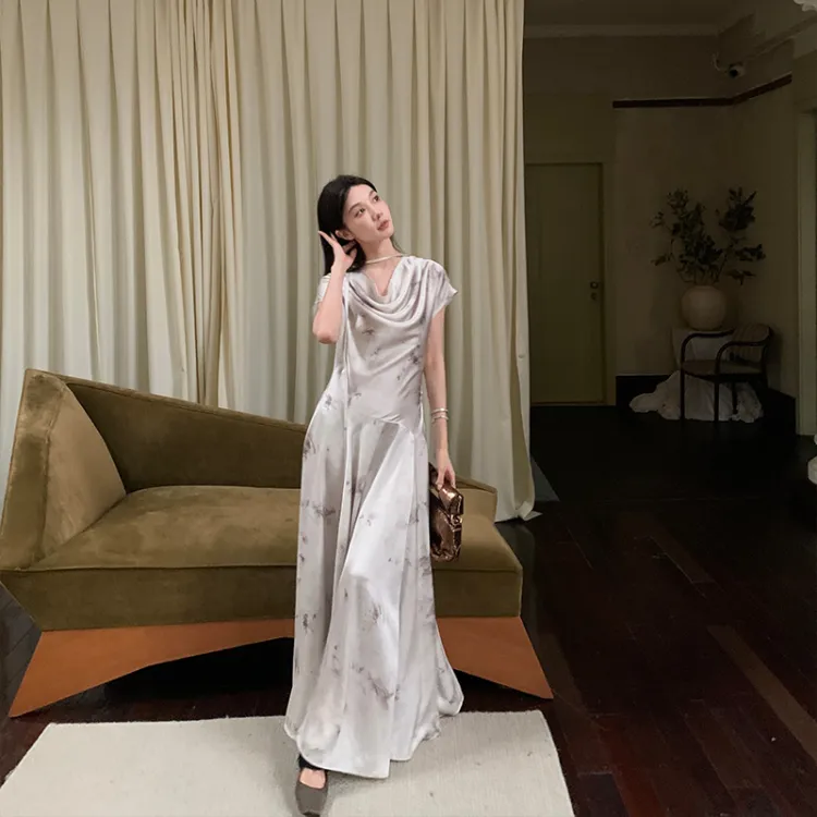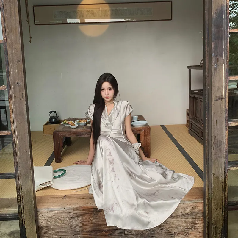 Ouyang Короткий рукав Платье Женское Туманно-белый