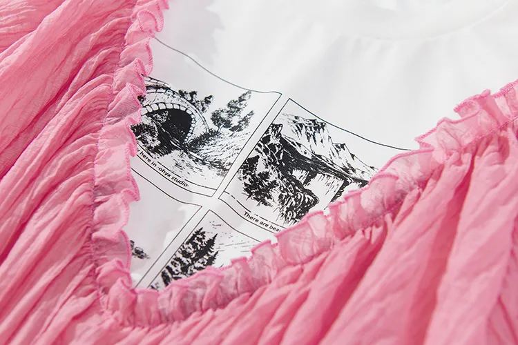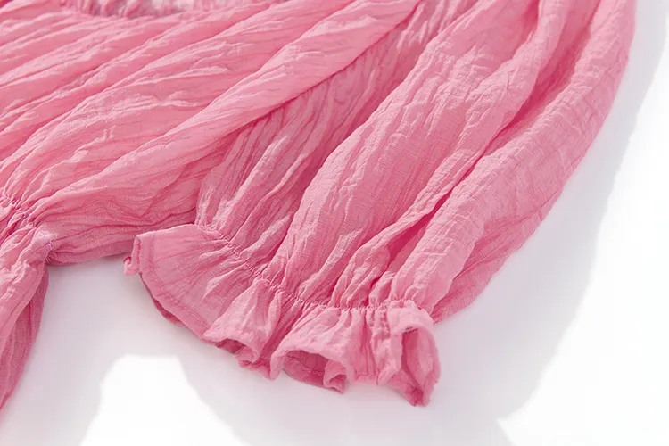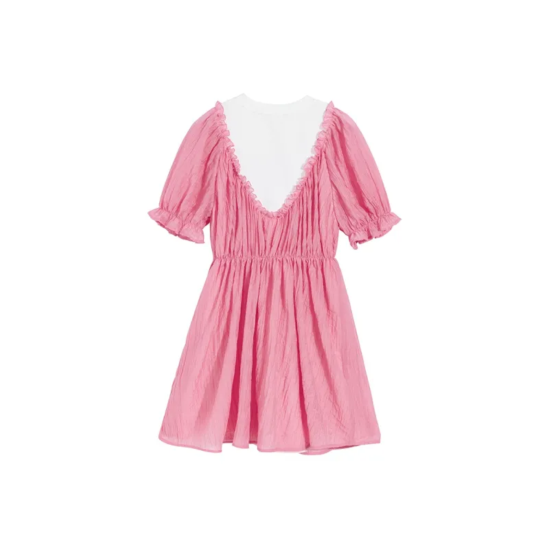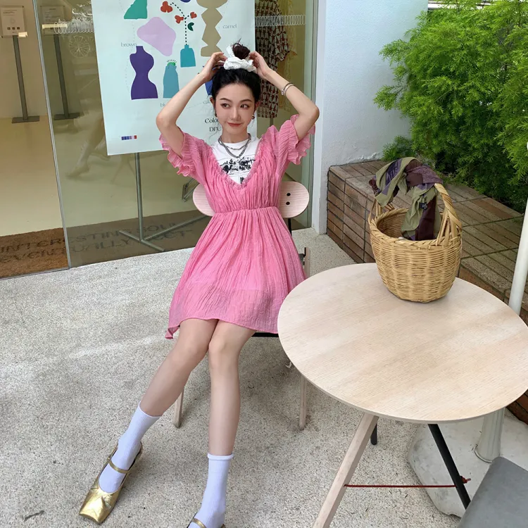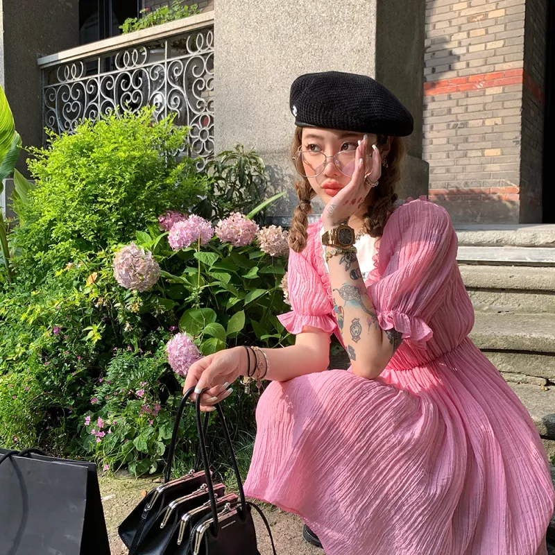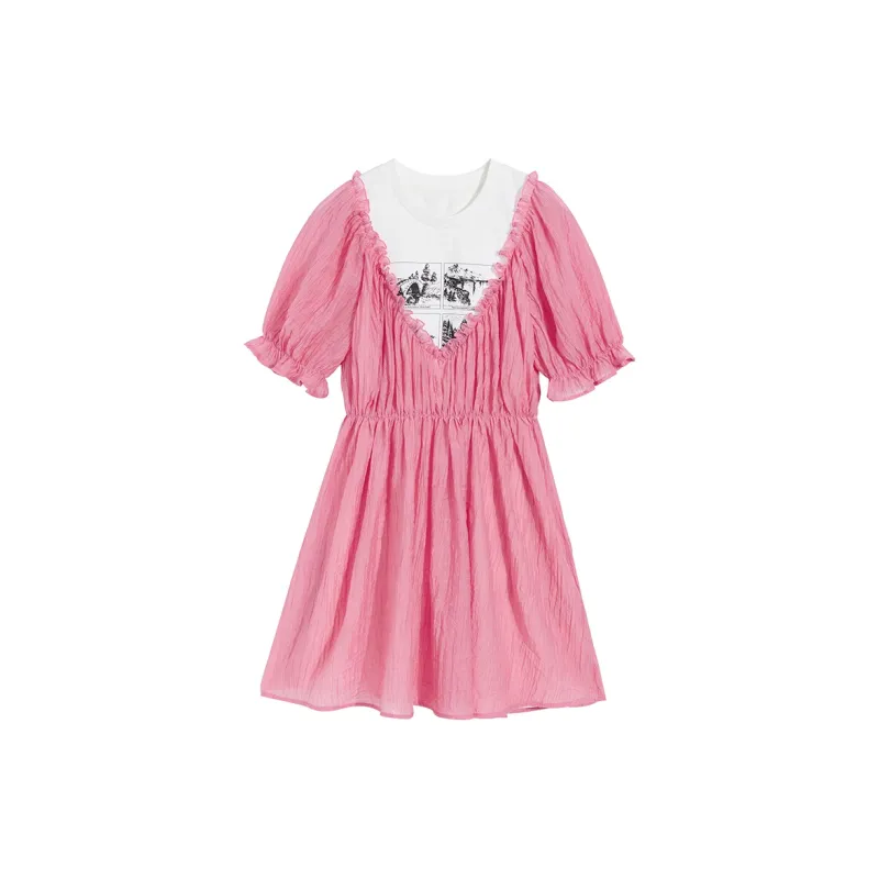 Ouyang Розовые Женские Платья с Коротким Рукавом