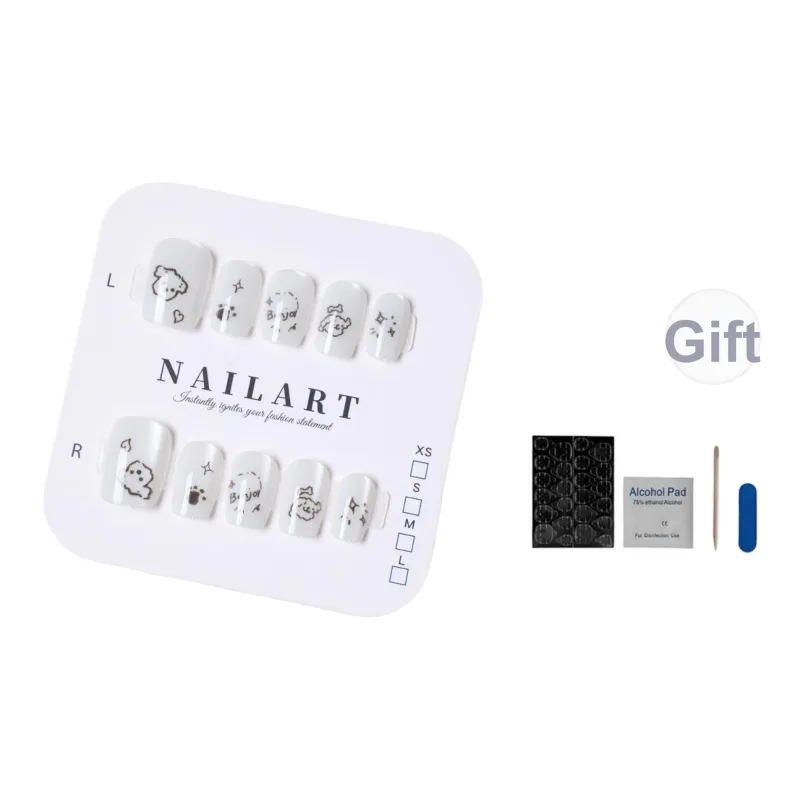 OUYUJI Крем Щенок Съемный False Nail Fashion Minimalist Style Патч для Ногтей Средний LADDER Белый Однотонный Милый