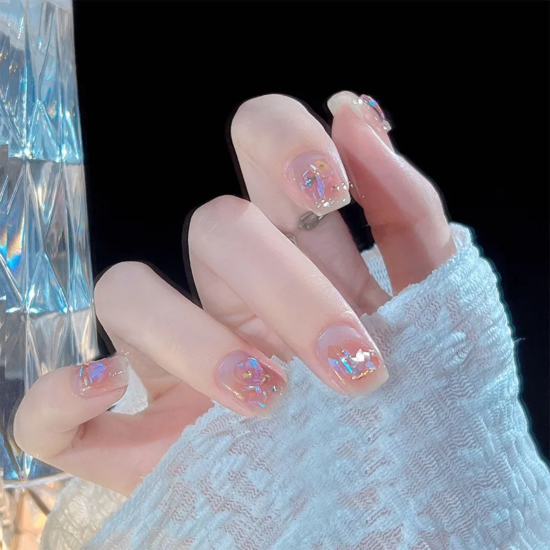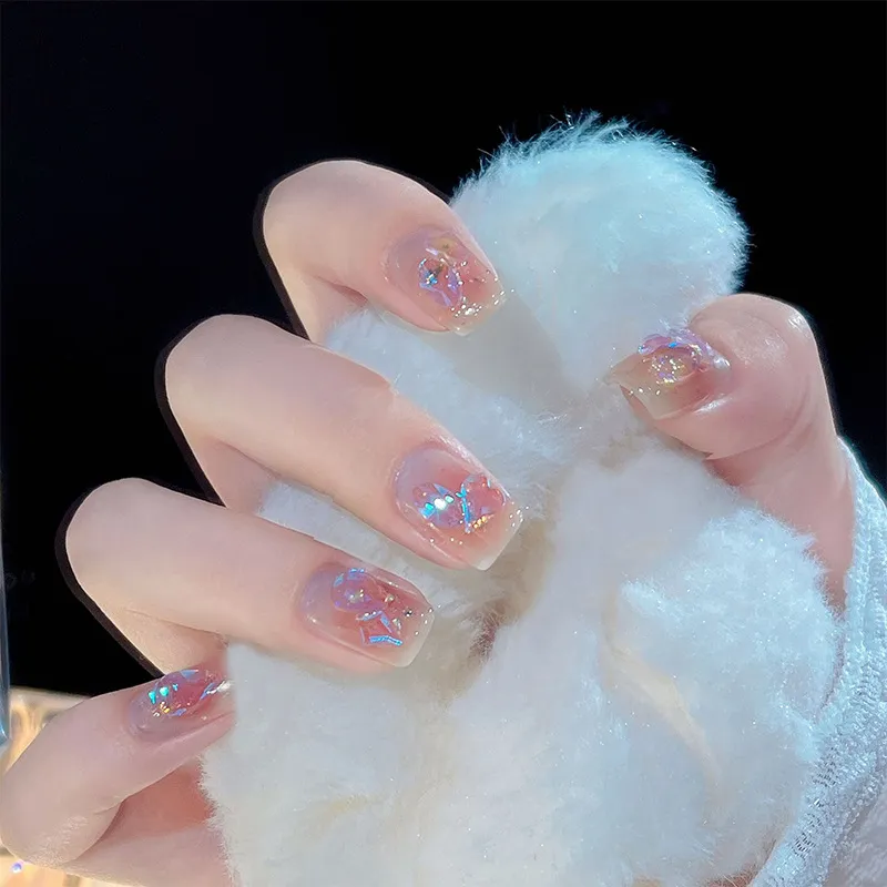 OUYUJI Укороченный Золотой Фольга Румяна Сладкий стиль Сверкающий страз False Nail Патч с Стекло Ромб Nail Art Стикер