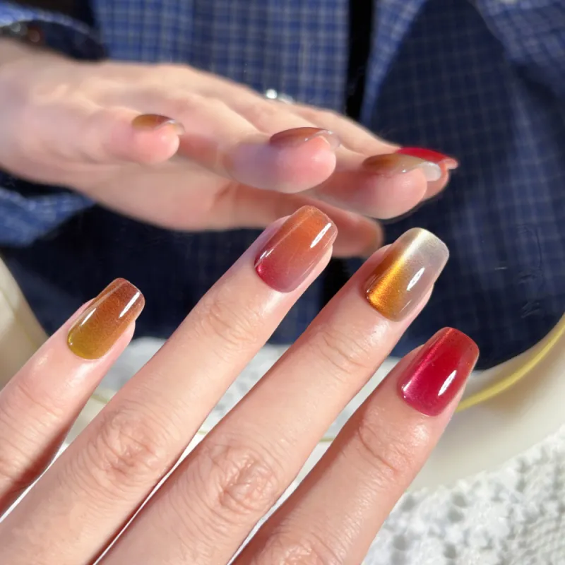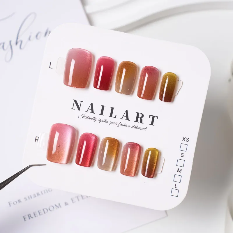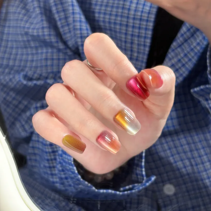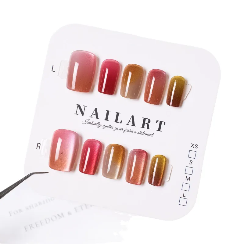 OUYUJI False Nail Квадратный Укороченный Радужный Кошачий глаз Градиентный Матовый