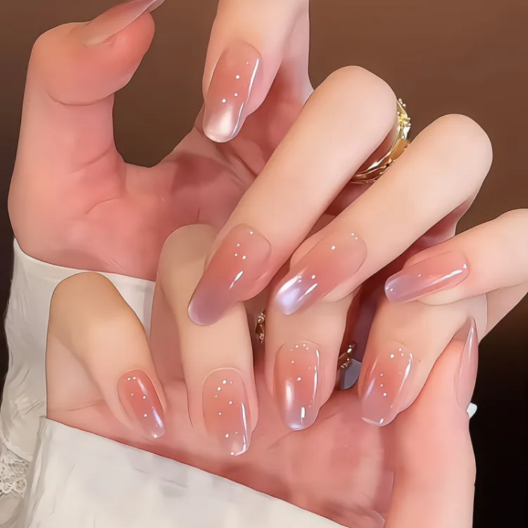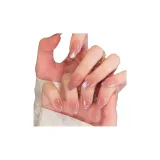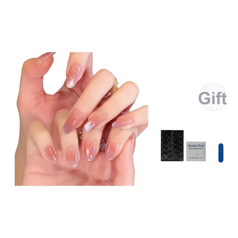 OUYUJI Ручной работы Готовый товар Съемный False Nail Миндаль Средний Staircase Овал Розовый Стиль Smudge Instagram