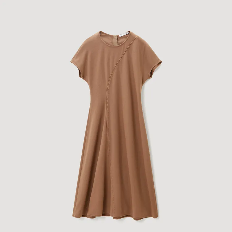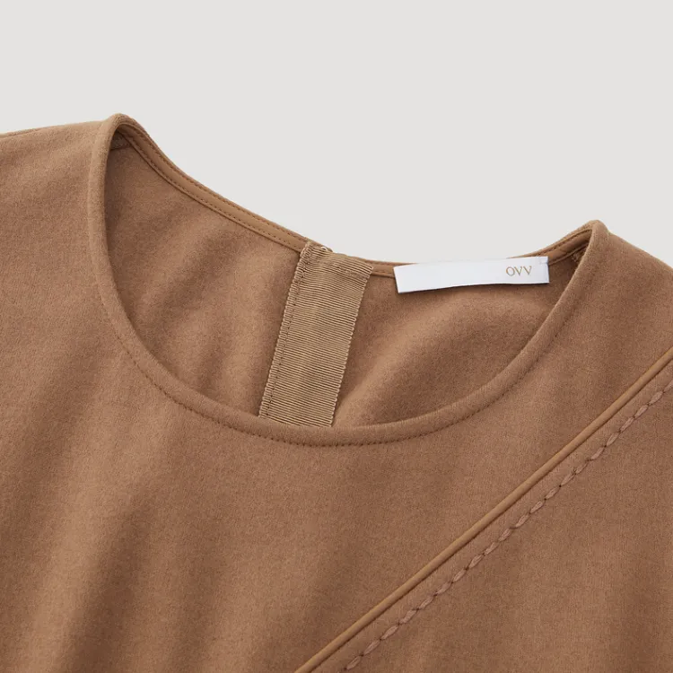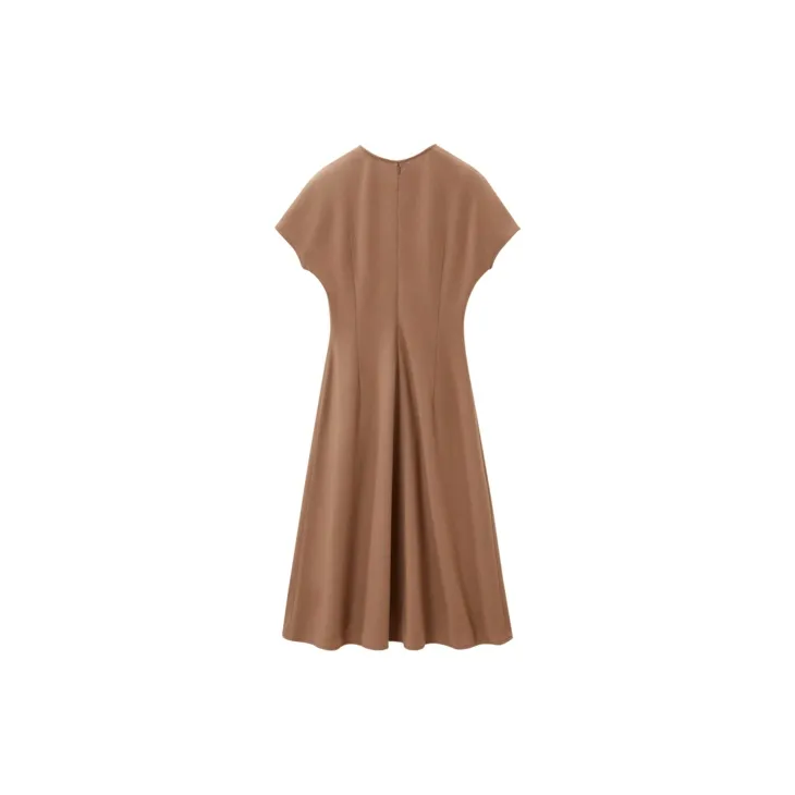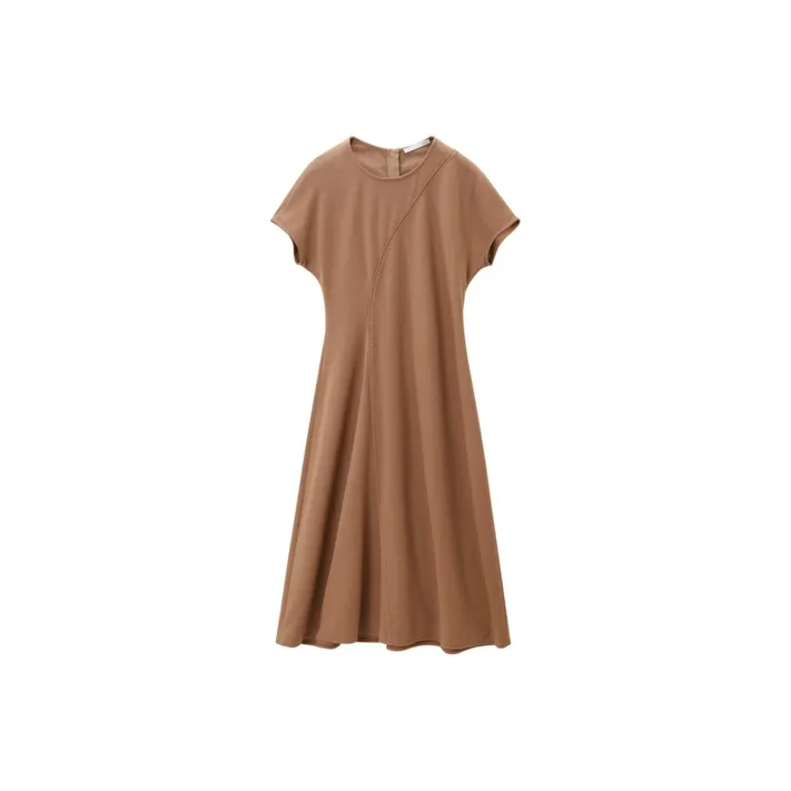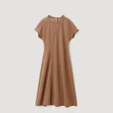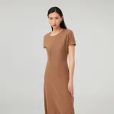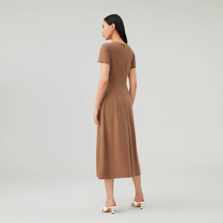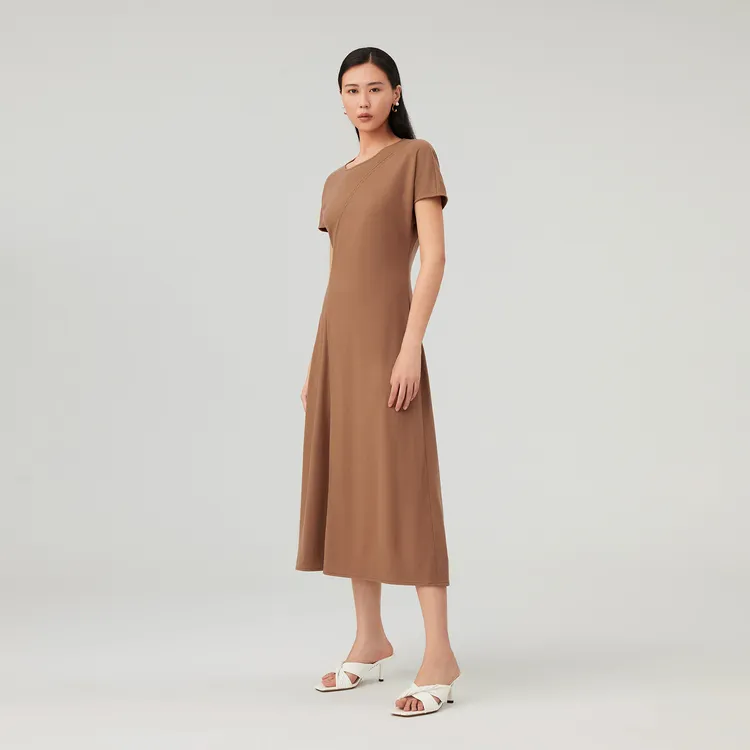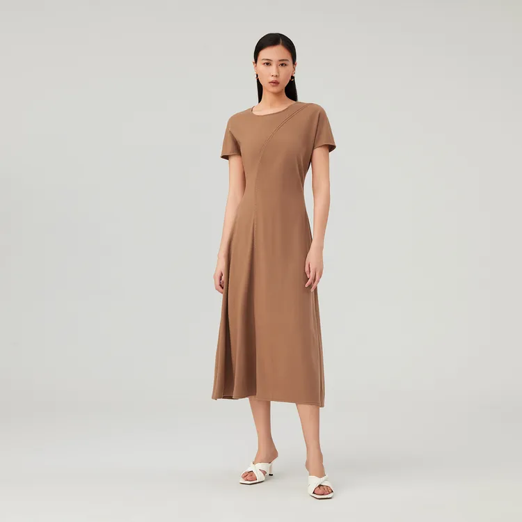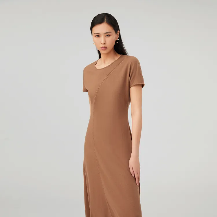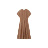 OVV Верблюжий Однотонный A3 Женские Длинные Платья с Рукавами