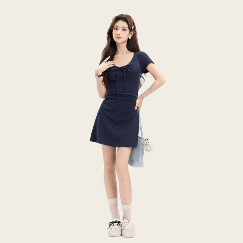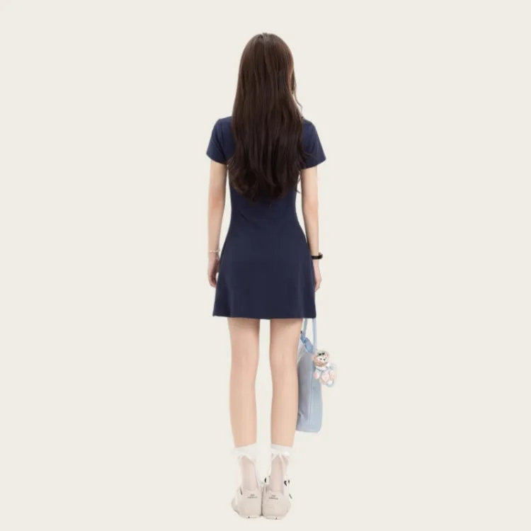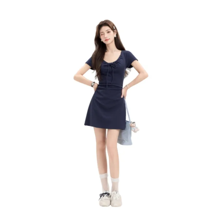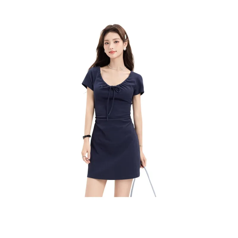 OYANXI Короткое платье с короткими рукавами женское темно-синий