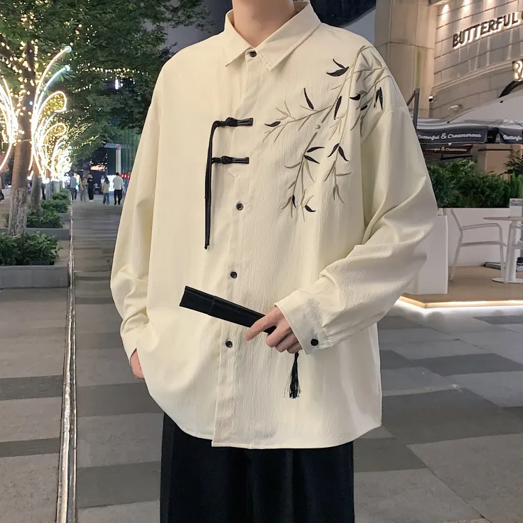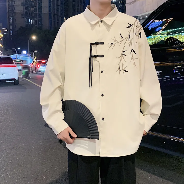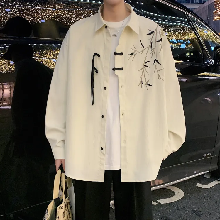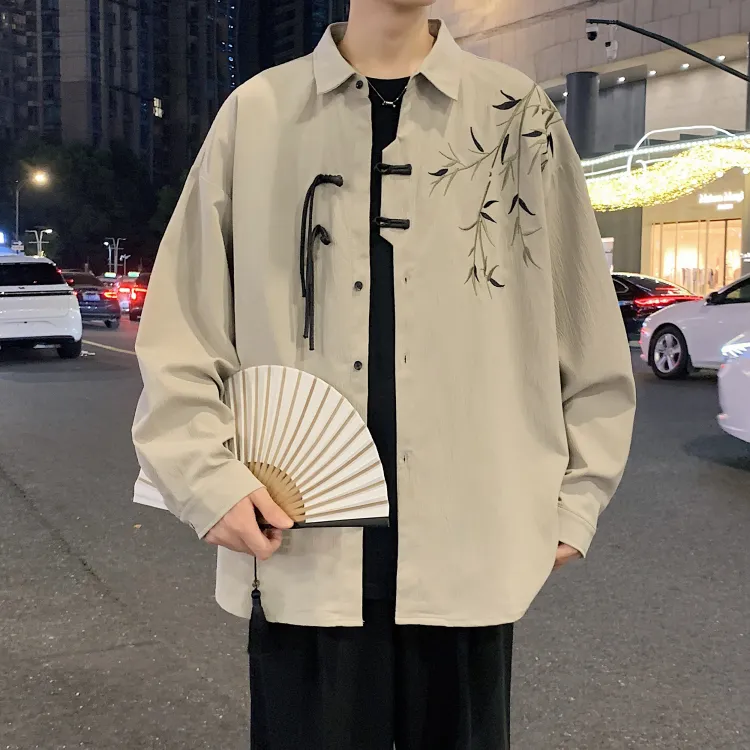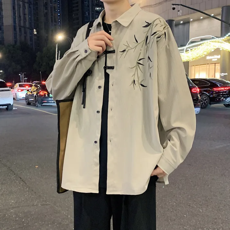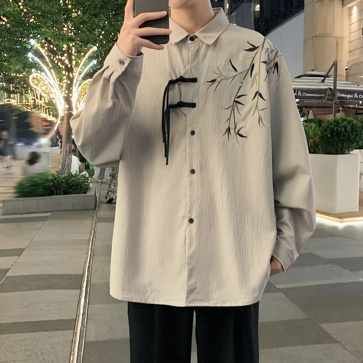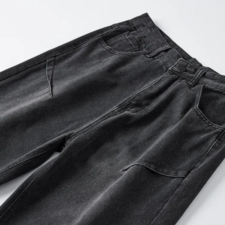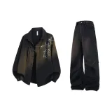 Комплект одежды [Серый рубашка цвета земли + черные джинсовые штаны]