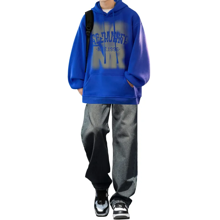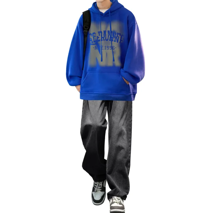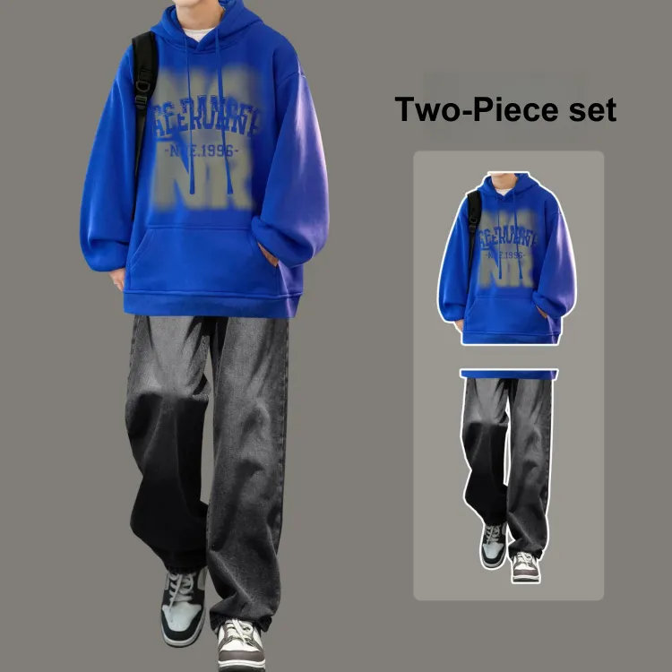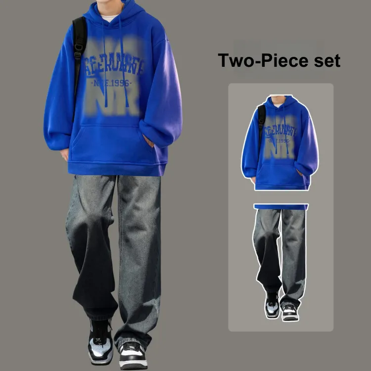 Комплект одежды [Свитшот мелкого синего цвета + черные джинсы]