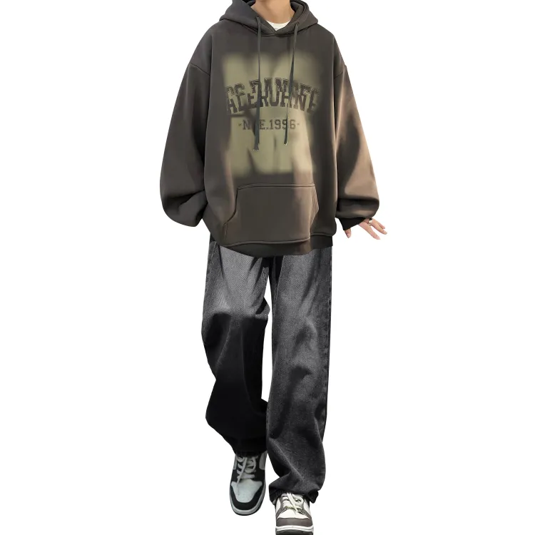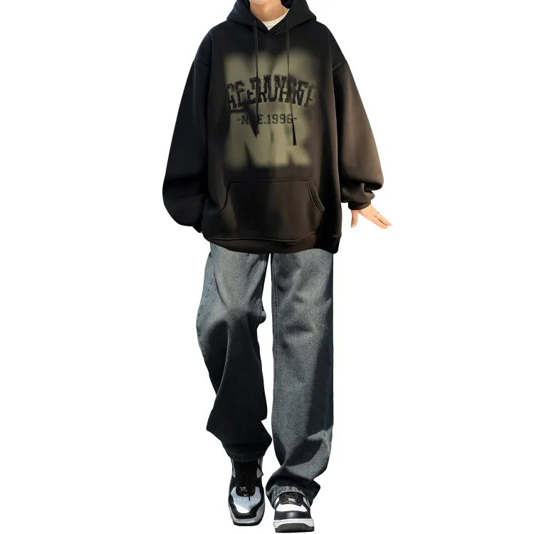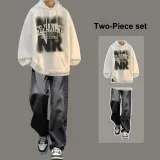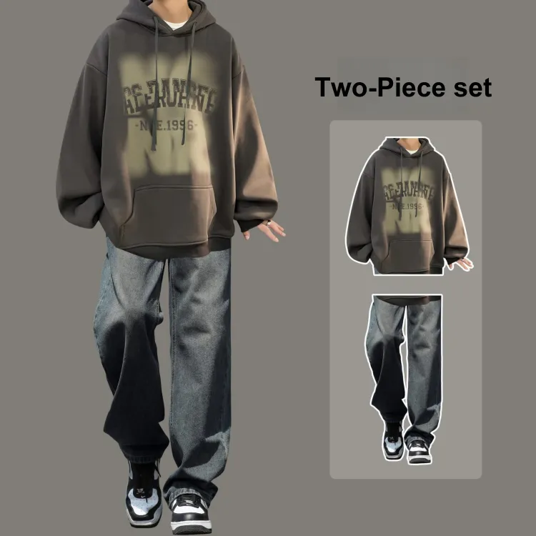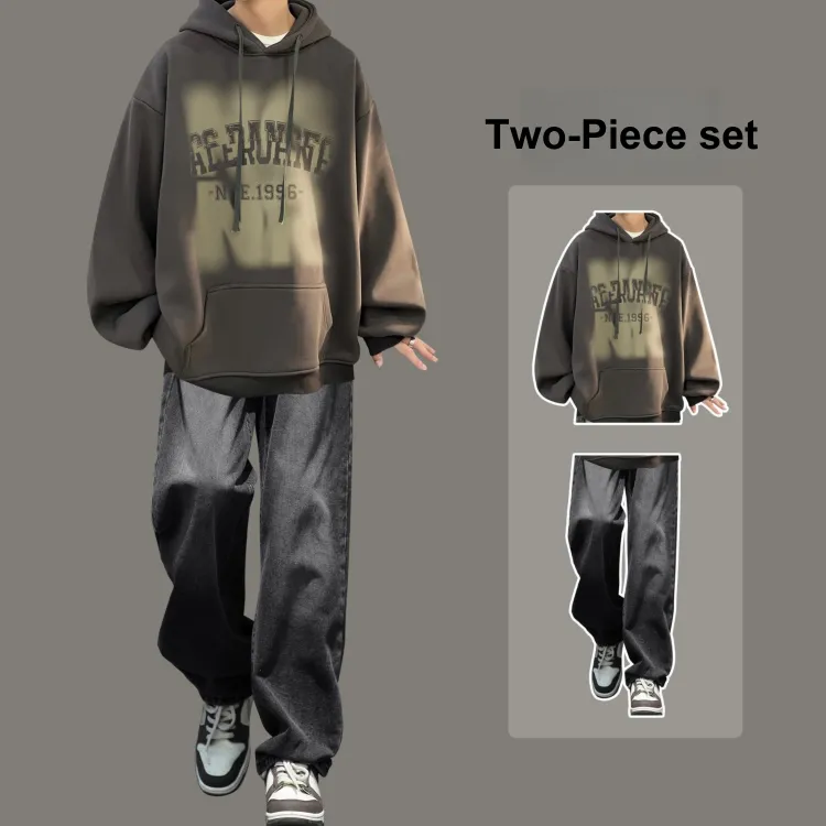 Комплект одежды [Темно-серый свитшот + черные джинсы]