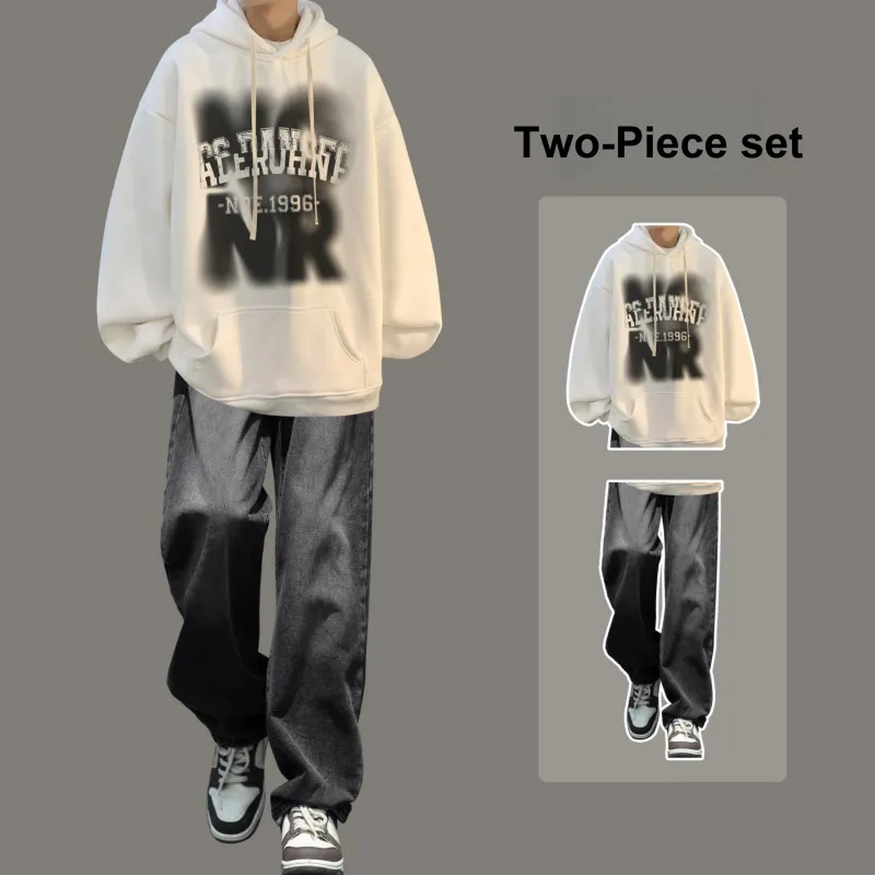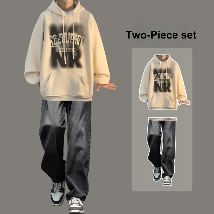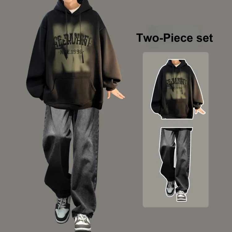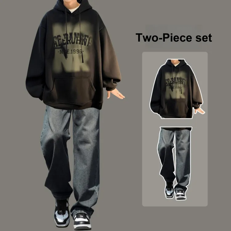Комплект одежды [Черный свитшот + Черные джинсы]