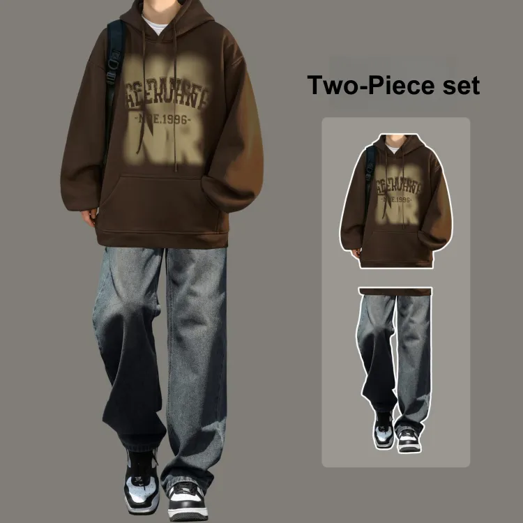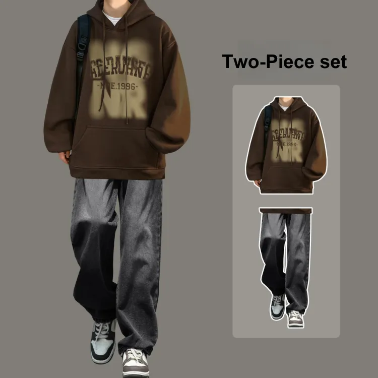 Комплект одежды [Темно-Кофейный Свитшот + Черные Джинсы]