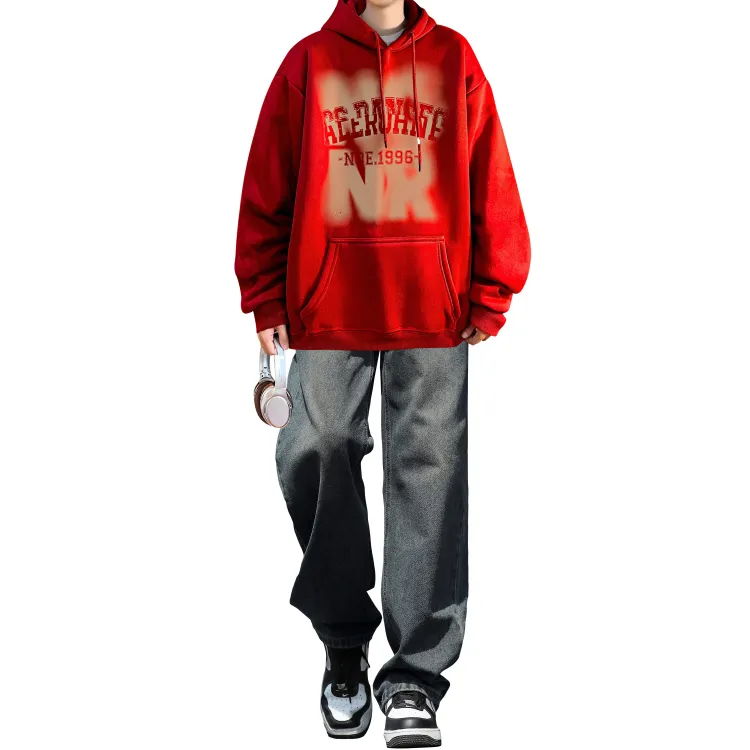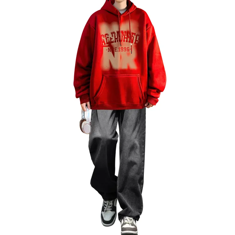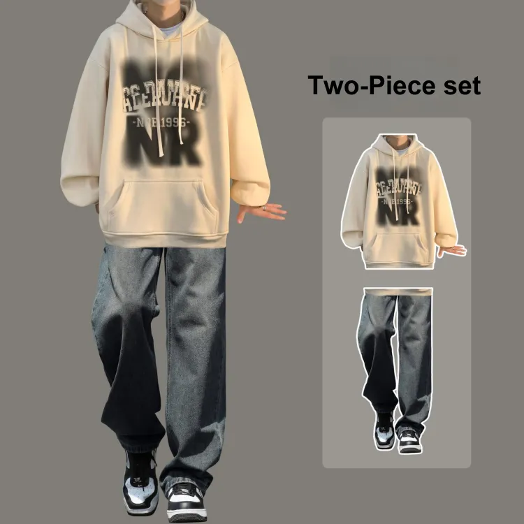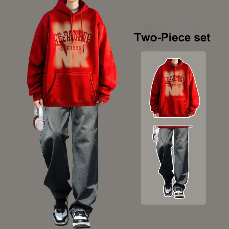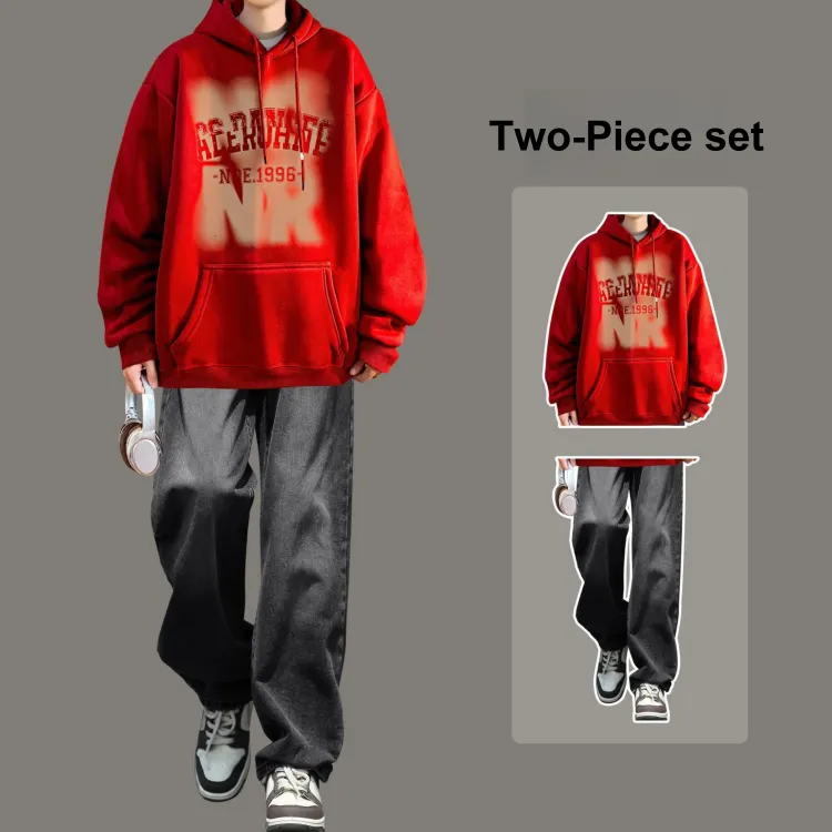 Комплект одежды [Бордовая толстовка + Черные джинсы]