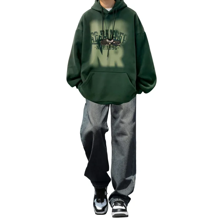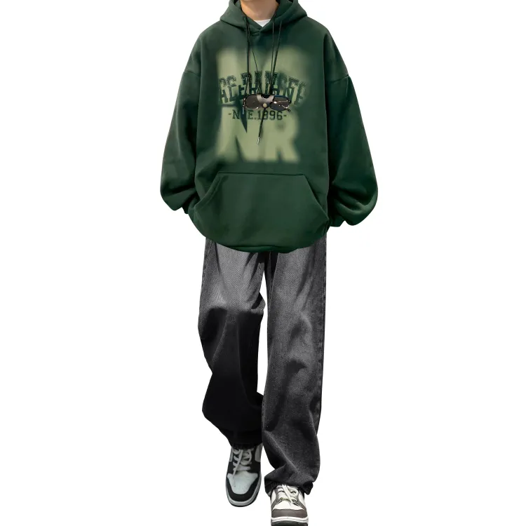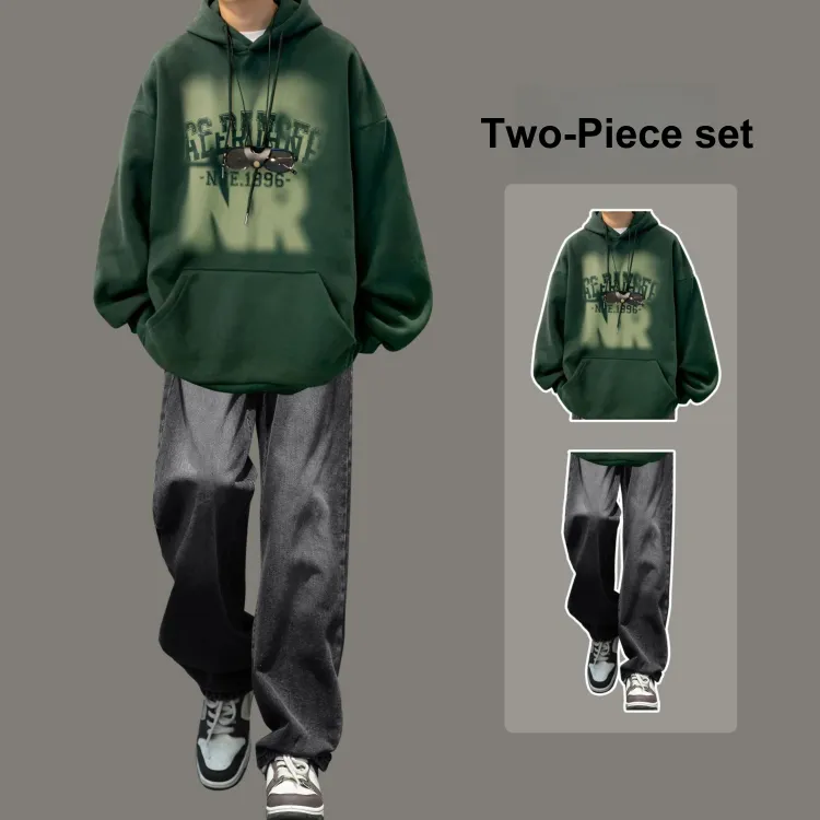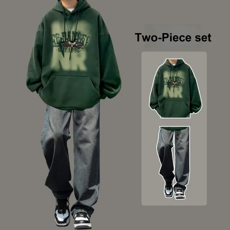 Комплект одежды [Темно-зеленый свитшот + черные джинсы]