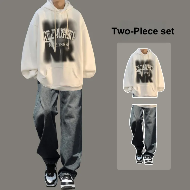 Комплект:Комплект одежды [Белый свитшот + Черные джинсы]
