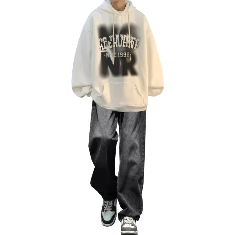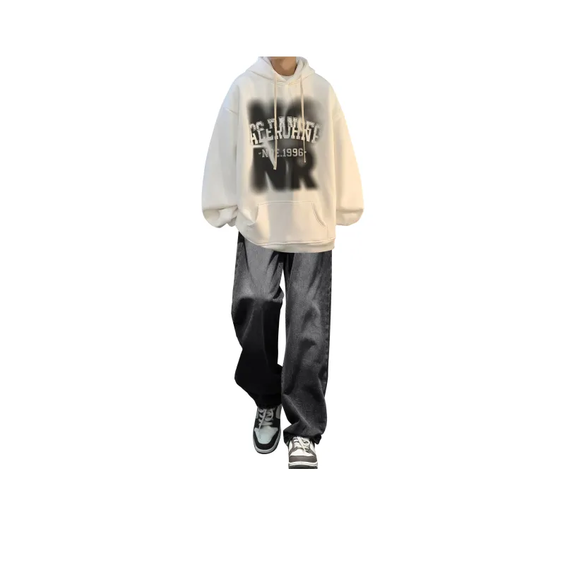 Комплект одежды [Белый свитшот + Черные джинсы]