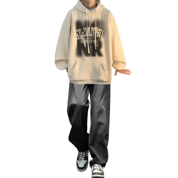 Комплект одежды [Абрикосовый свитшот + черные джинсы]