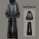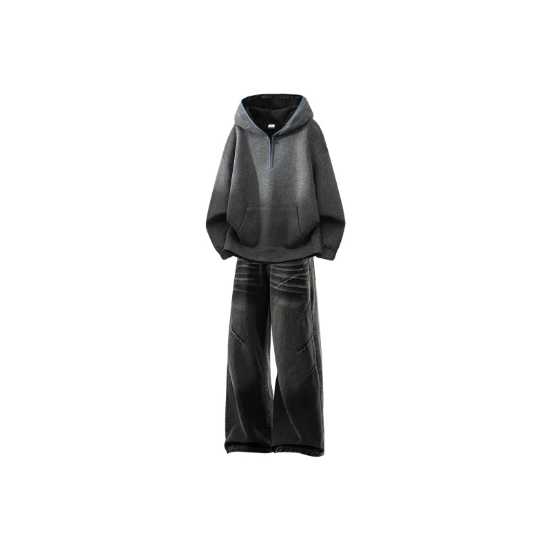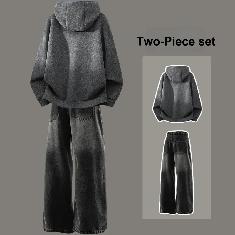 Комплект:Комплект одежды [Темно-серый свитшот + черные джинсы]