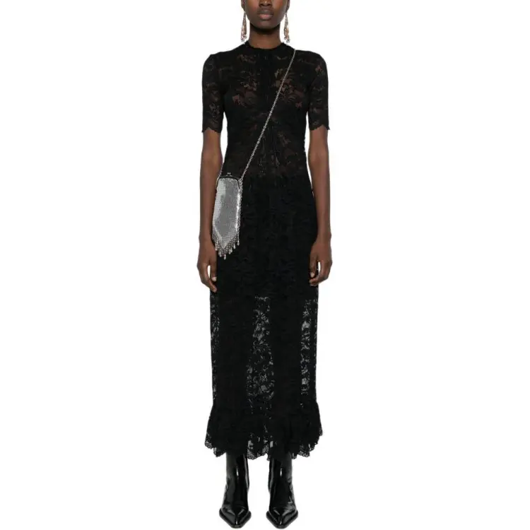 Paco Rabanne SS24 Короткое платье с короткими рукавами женское черное