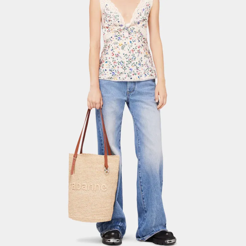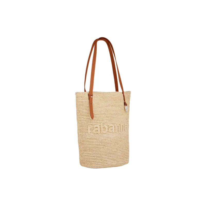 Paco Rabanne Raffia Tote Bag Shopping Bag Shoulder Bag Large Women's Beige Gold