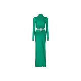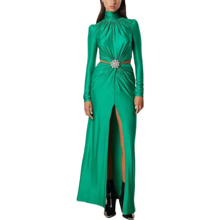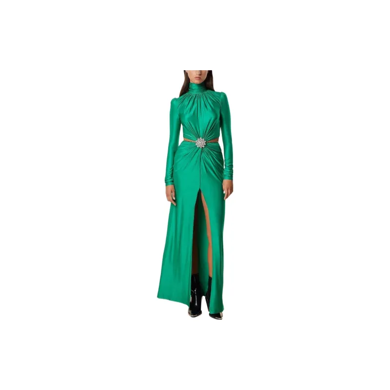 Paco Rabanne Зеленое Женское Длинное Платье с Рукавами