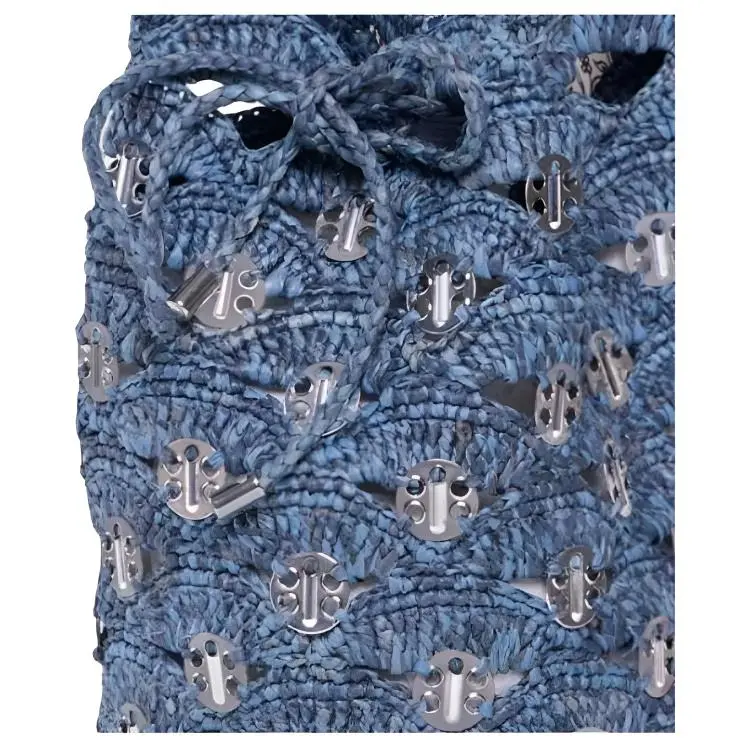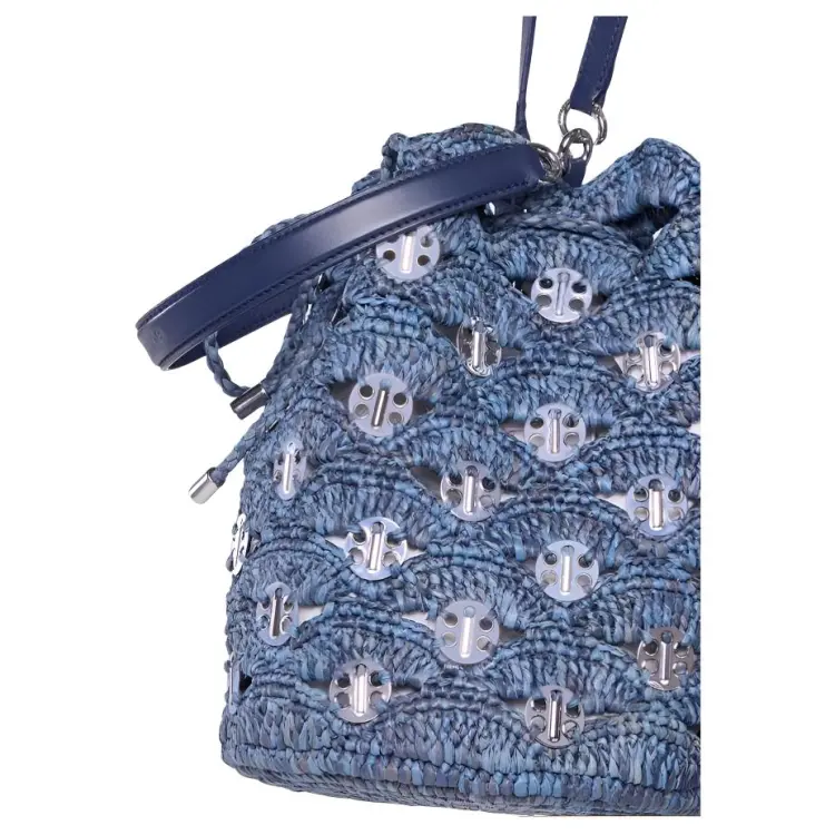 Paco Rabanne Рафия Ведрообразная Сумка Сумка через плечо Сумка Женская Джинсовая Синяя