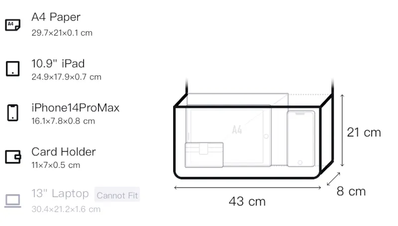 Д43*Ш8*В21см