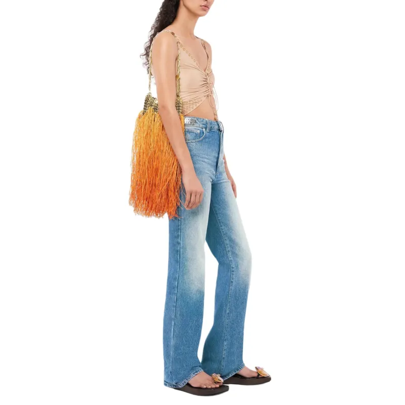 Paco Rabanne Сумка через плечо из соломенной ткани Женская Золотая и Оранжевая