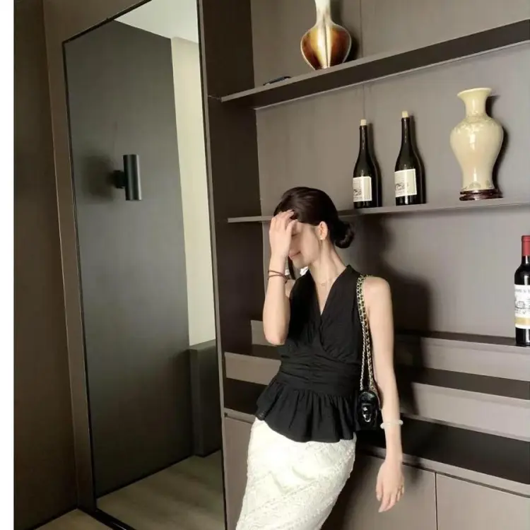 Черный топ без рукавов + юбка, комплект одежды