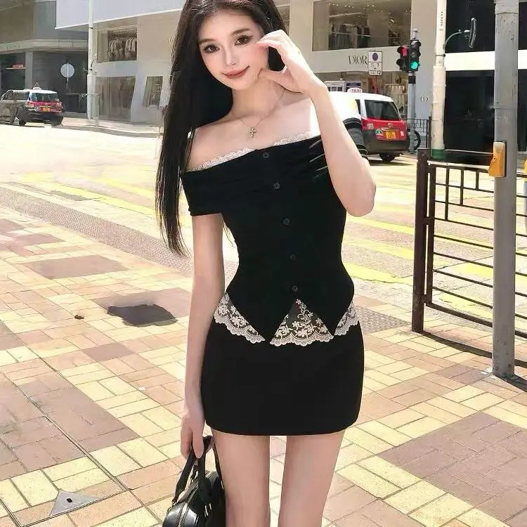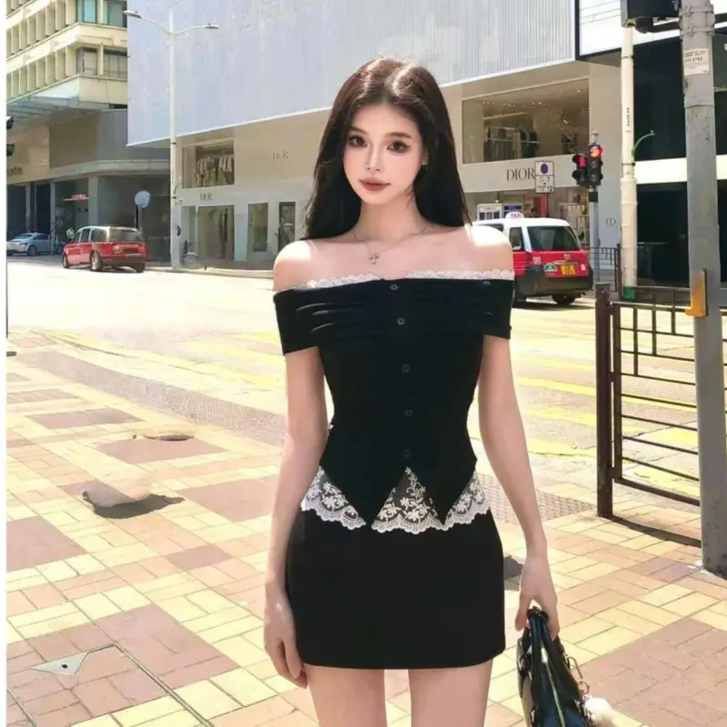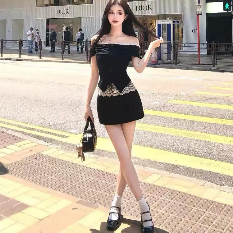 Топ без рукавов + черная юбка комплект