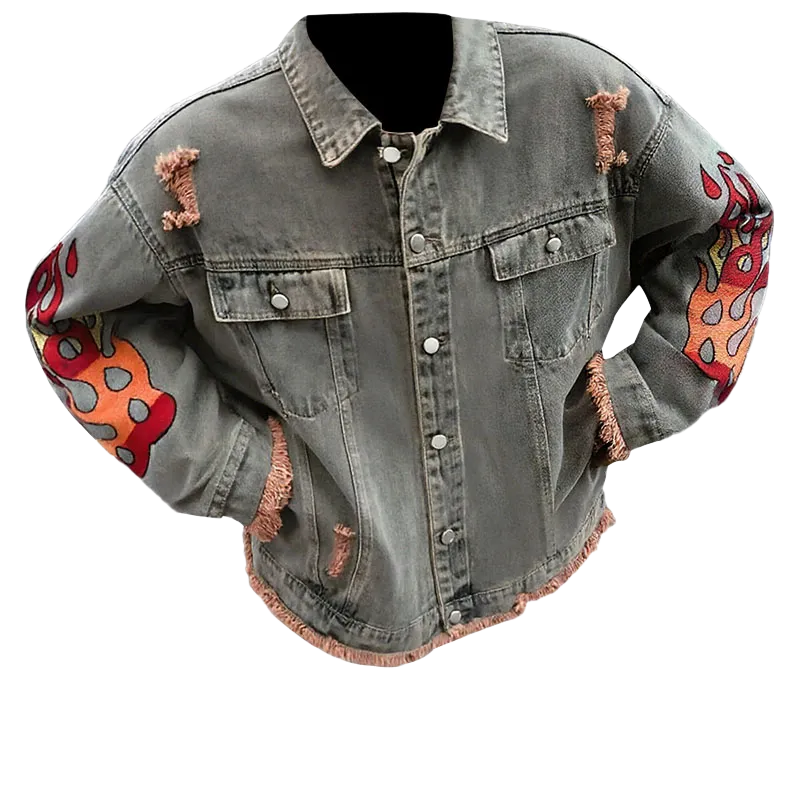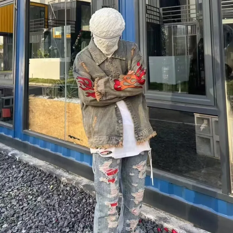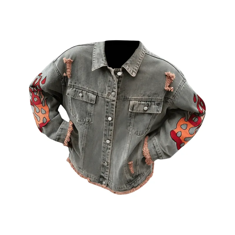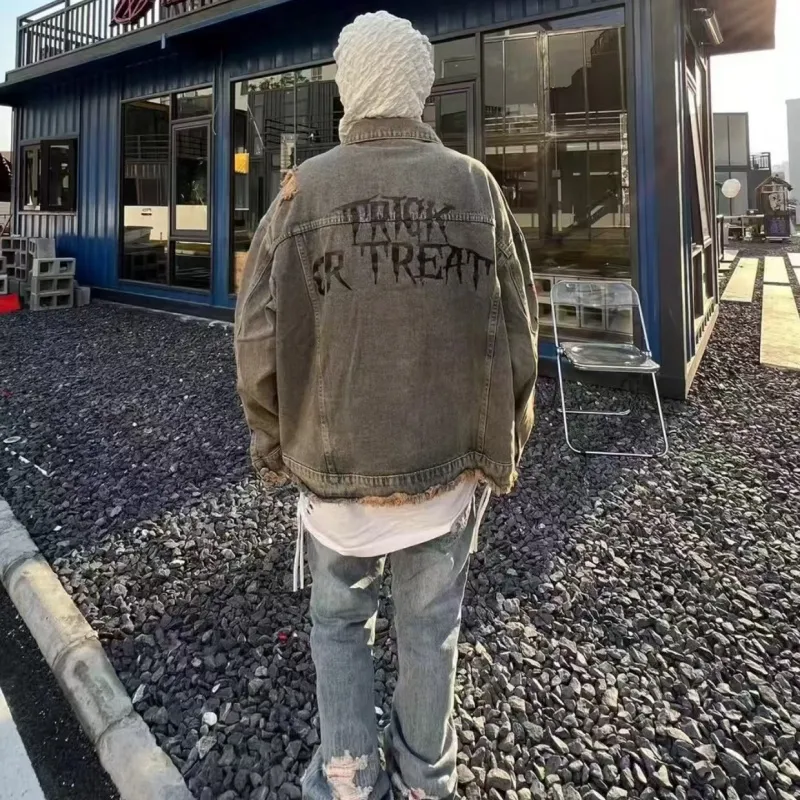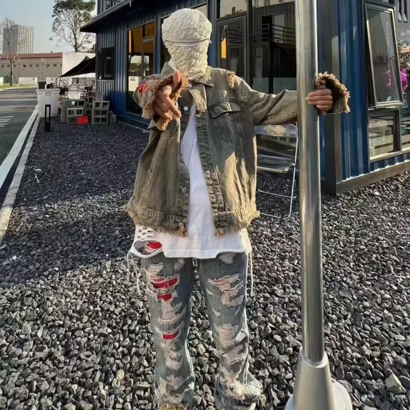 PALKECH Вымытый цвет [Роскошная уличная мода Streetwise Бахрома] Унисекс Куртки
