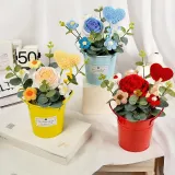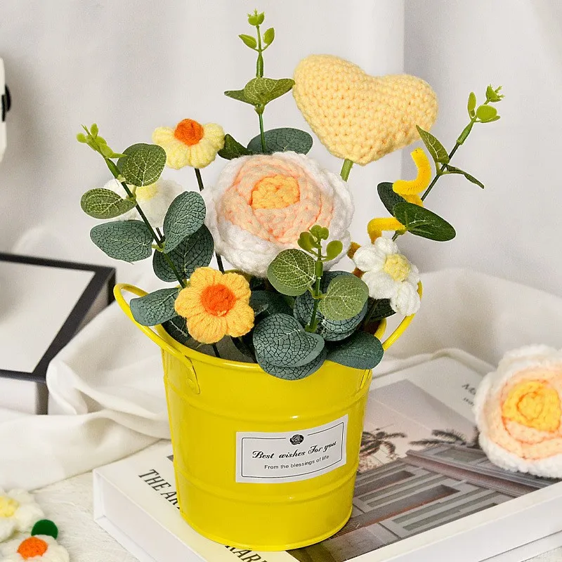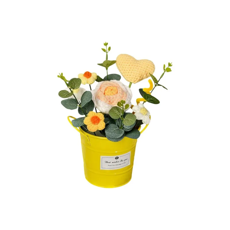 Pampered Journal Желтый Сердце Розовый Обнимающий Ведрообразный Потовый Растение Стол Декор Трикотажная Ткань Букет DIY Игрушки