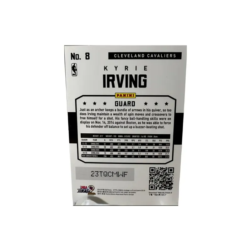 Панини Кавальерс Kyrie Irving The Oracle Laser Beam Рефракция Rare Card Спортивные карты 1 шт