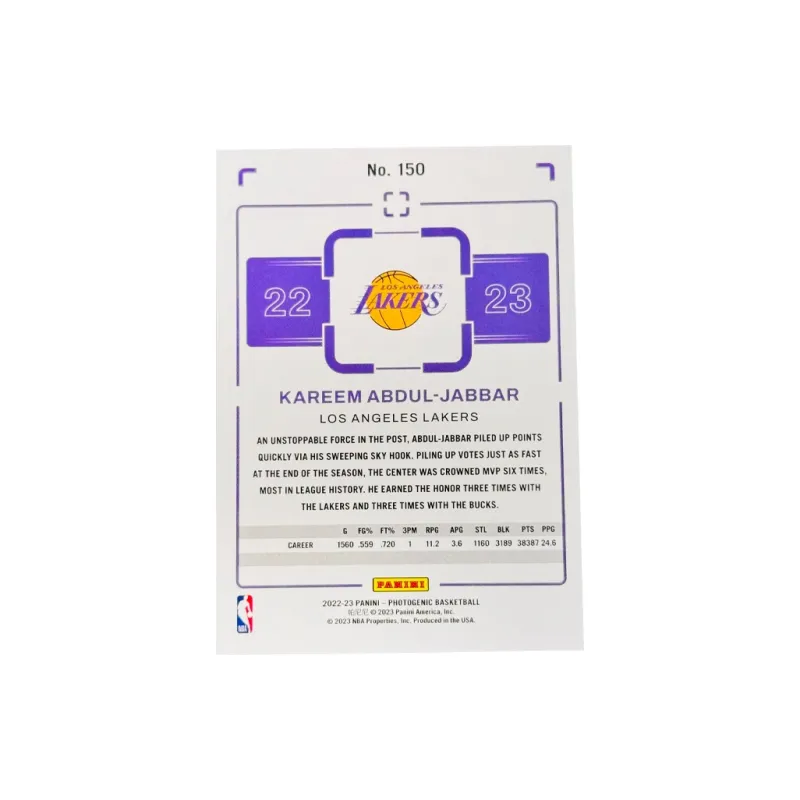 PANINI Skyhook Kareem Abdul JABBAR Лейкерс On Field Collection Классическая Selection Основа TecPass CONDITION