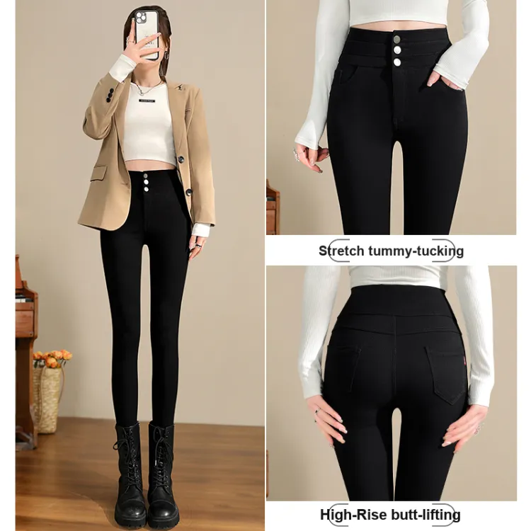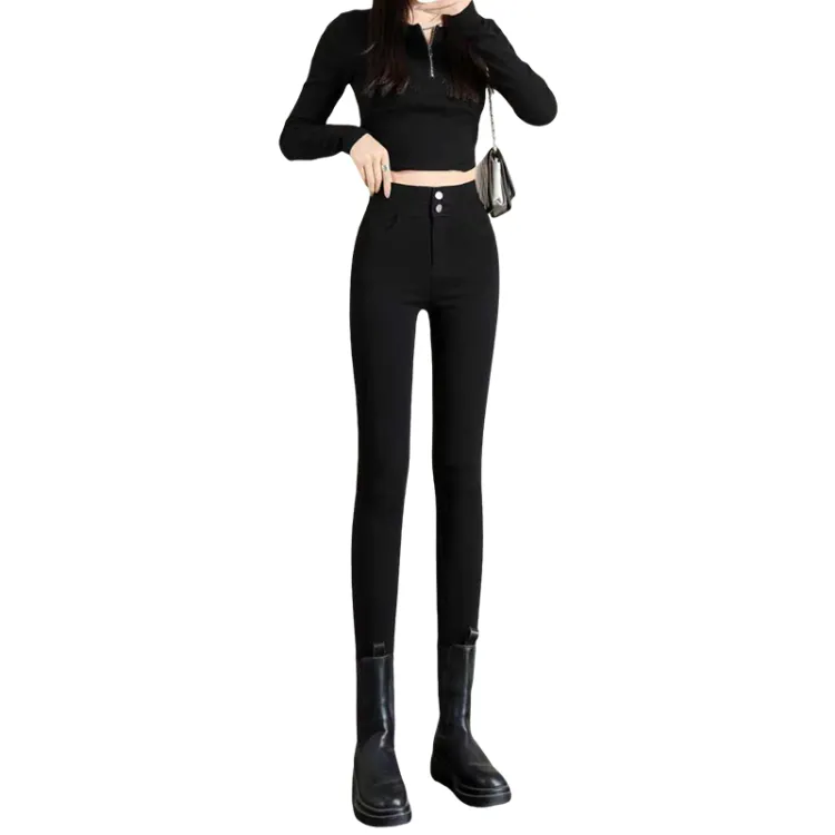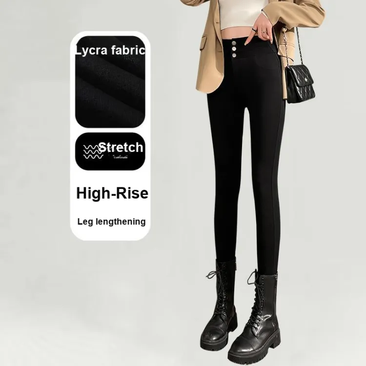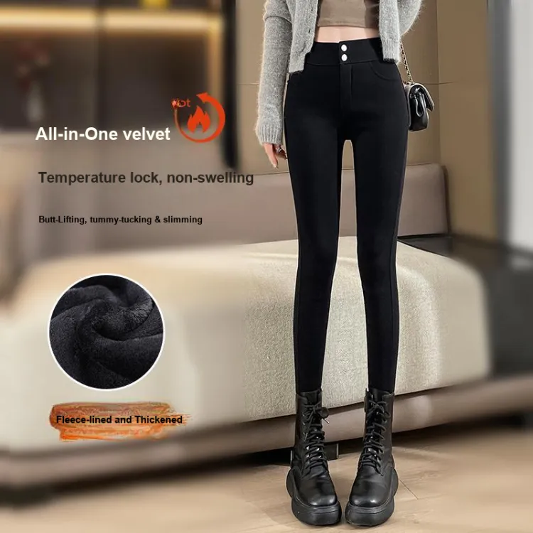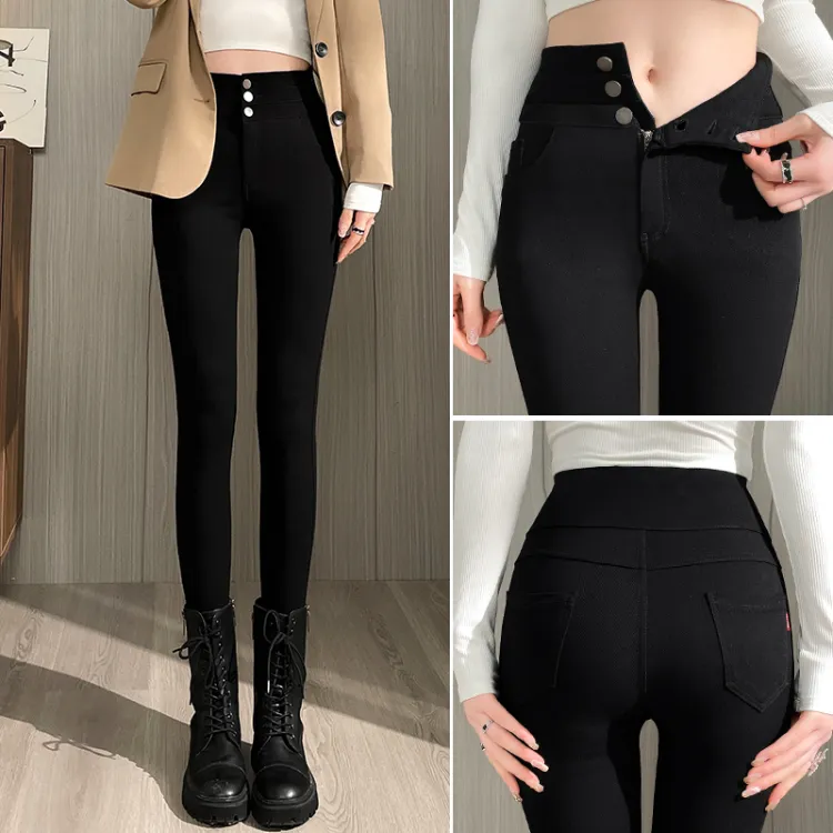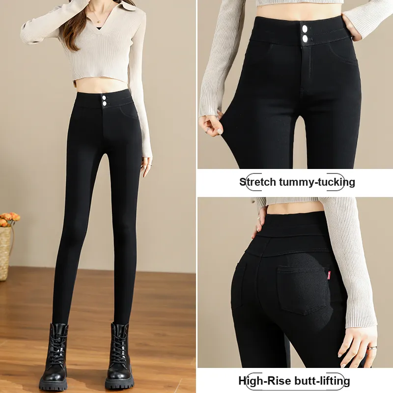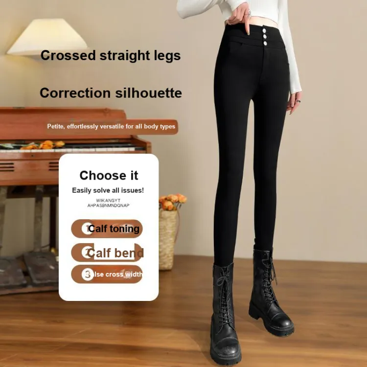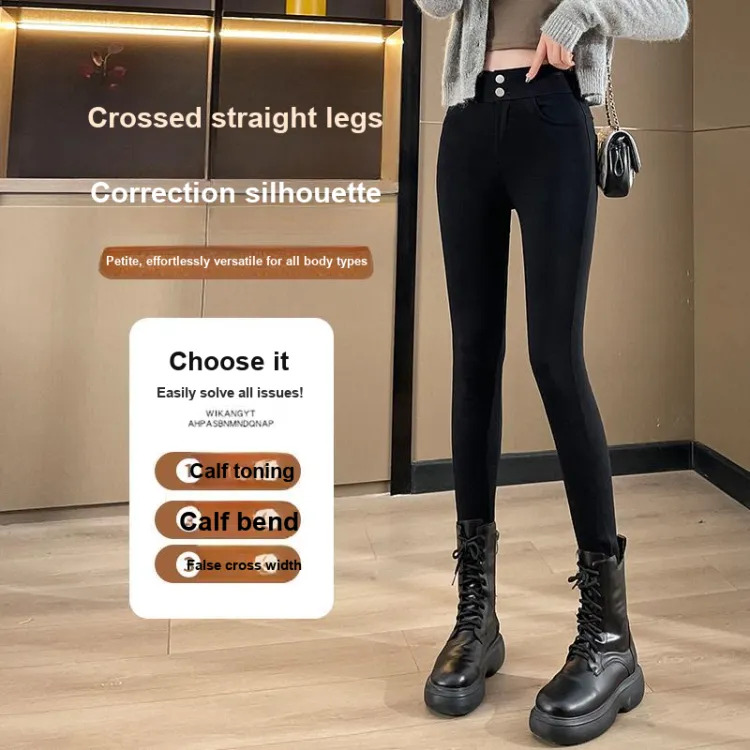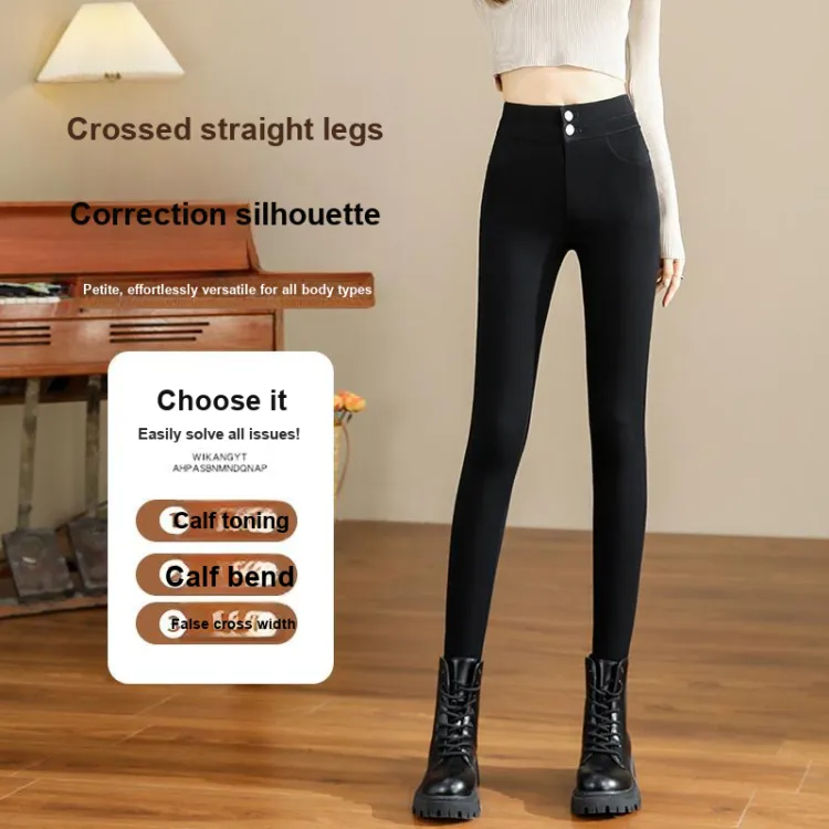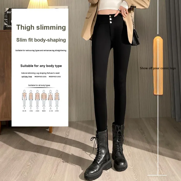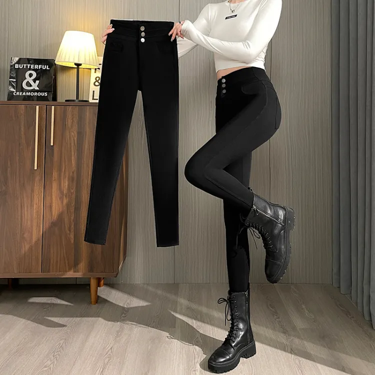 . PANSY SABAN Осенние и зимние Флисовые подкладки Ботинки с Брюки Леггинсы Маленькие Женские Магические Черные Брюки