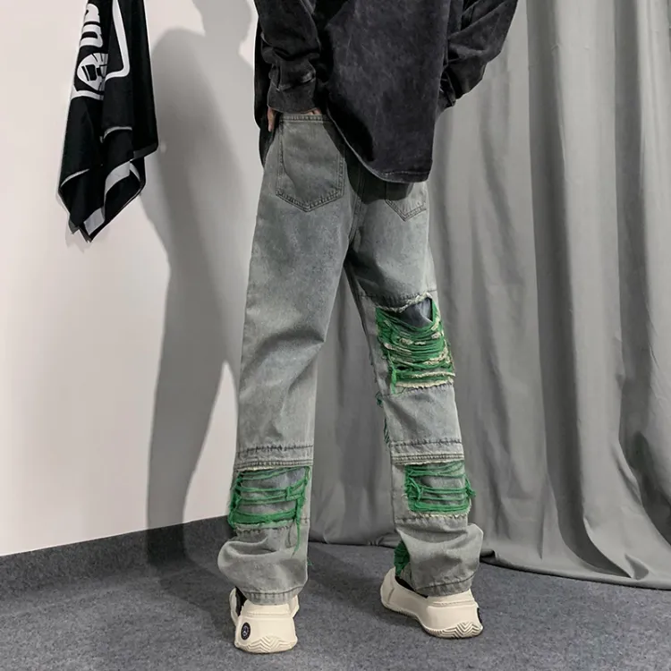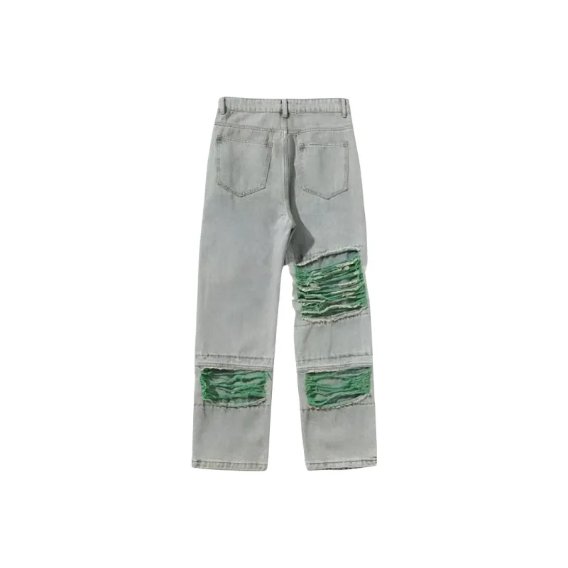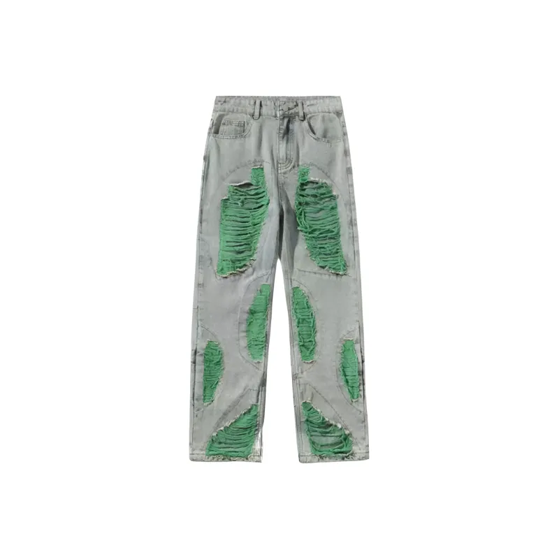 PAOPAOXIANJING Green Unisex Jeans PAOPAOXIANJING Зеленые Унисекс Джинсы