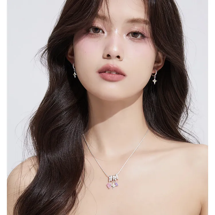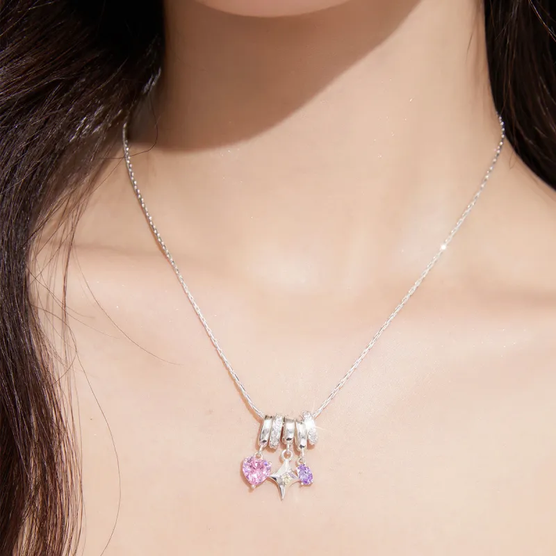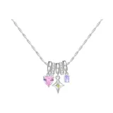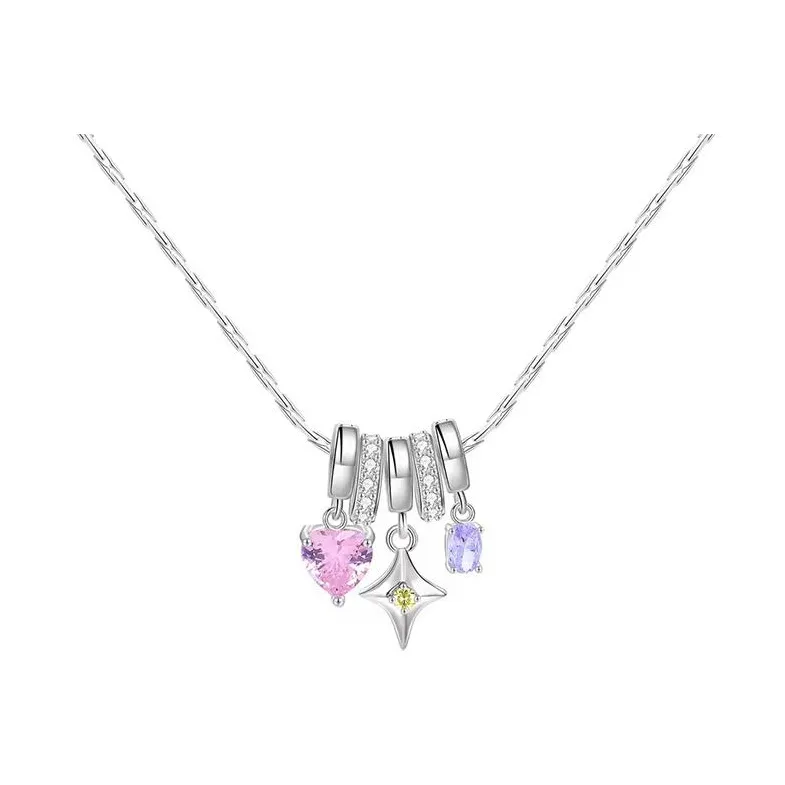 Фиолетовый овальный циркон 6*4 мм, розовое сердечко циркон 8 мм, четырехконечная звезда аксессуары 12*10 мм, овальное кольцо с полностью покрытым горным хрусталем 3*10 мм, крест в форме молотка круглая цепь 1,2*400 мм, круглая цепь длиной 400 мм, общая длина 40 см + 5 см удлинительная цепь