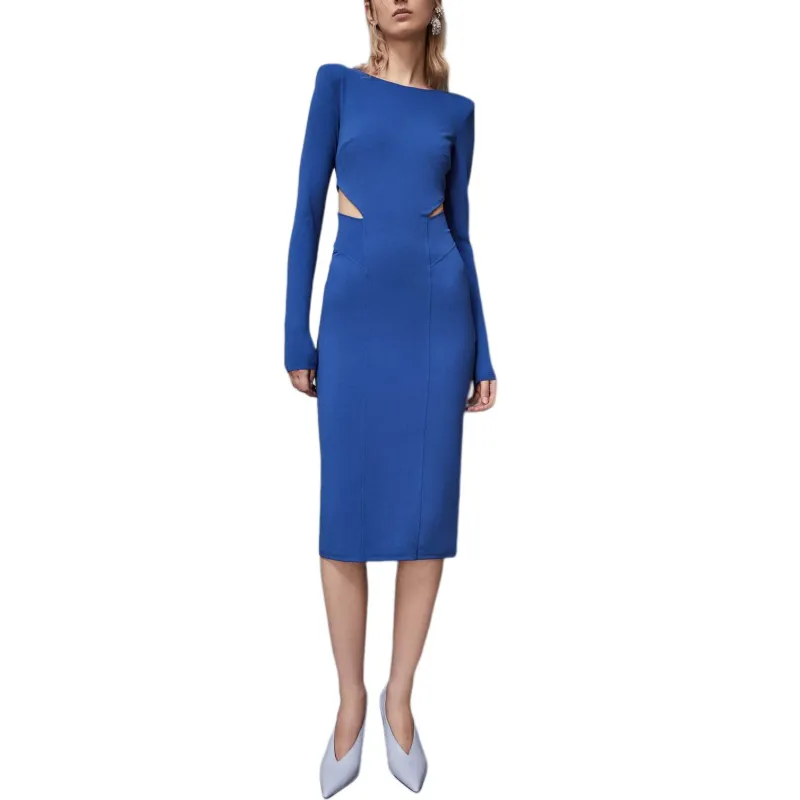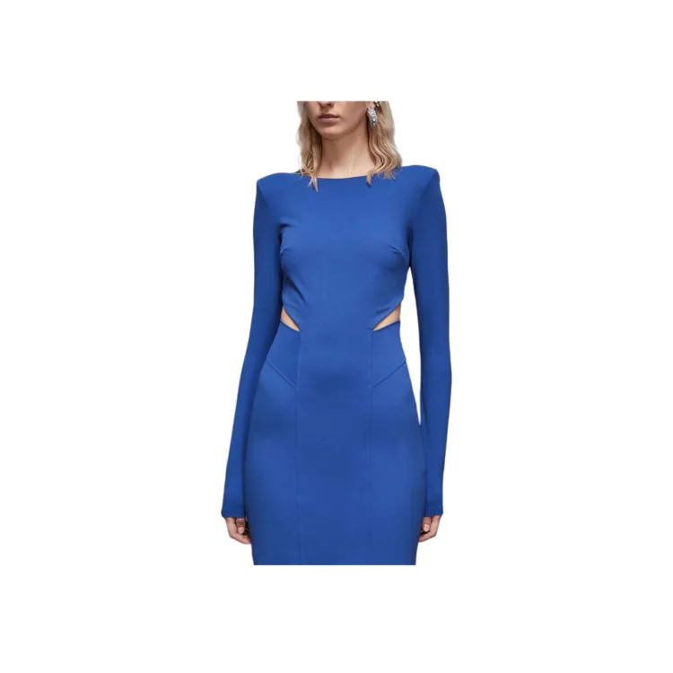 Patrizia Pepe Длинное платье с длинными рукавами женское синее